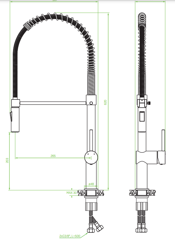 Długość wężyków przyłączeniowych 500 mm