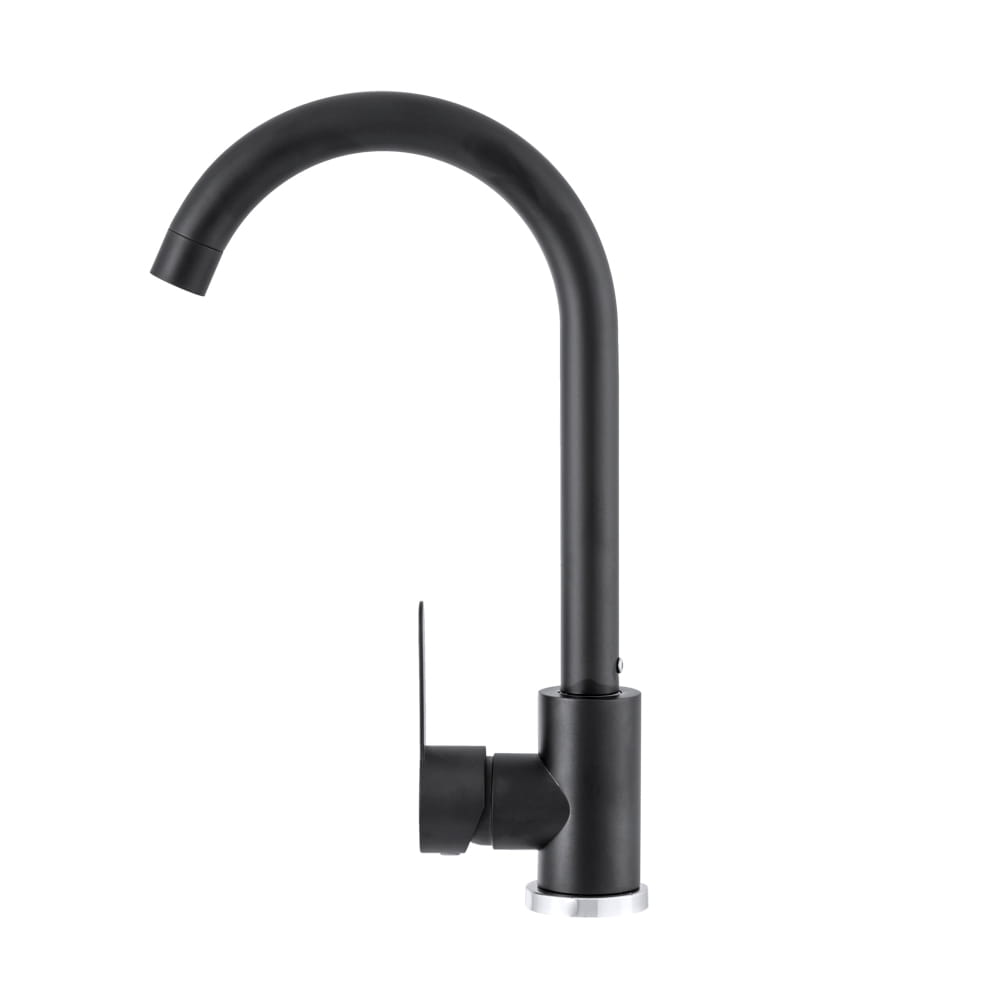 Czarna bateria kuchenna stojąca LAVRE DECO to praktyczne i estetyczne rozwiązanie do nowoczesnych kuchni. Prosta forma z wysoką, łukowatą wylewką zapewnia wygodę podczas mycia naczyń i napełniania garnków, a matowe wykończenie w kolorze czarnym podkreśla charakter wnętrza.