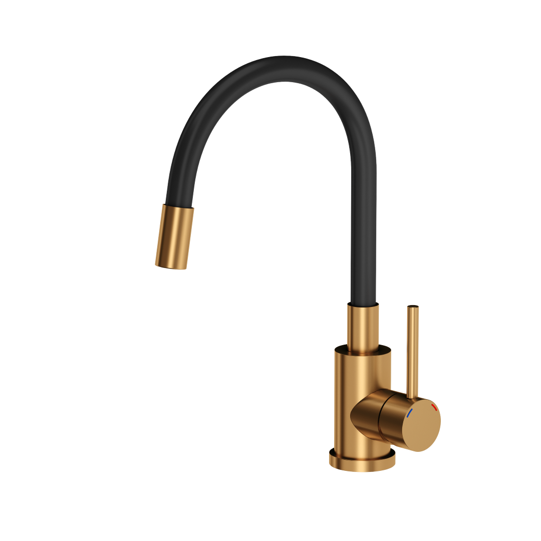 Bateria zlewozmywakowa MAGGIE w czarnym wykończeniu z elementami miedzi to propozycja dla tych, którzy cenią nowoczesny design i wygodę użytkowania. Czerń dodaje jej wyrazistości i świetnie komponuje się zarówno z minimalistycznymi wnętrzami, jak i kuchniami w stylu loftowym czy industrialnym. To stylowa i praktyczna bateria kuchenna czarna z dodatkiem miedzi z elastyczną wylewką, która łączy wygląd z funkcjonalnością.