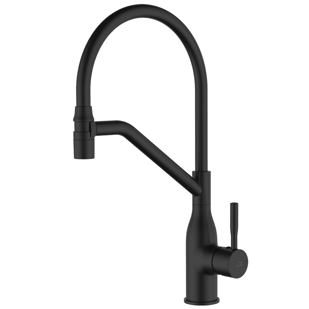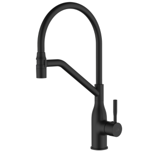 Bateria kuchenna Colina z elastyczną wylewką w matowej czerni to idealne połączenie nowoczesnego designu i wygody użytkowania. Jej minimalistyczna forma doskonale współgra zarówno ze zlewozmywakami granitowymi, jak i stalowymi, podkreślając elegancki charakter każdej kuchni.