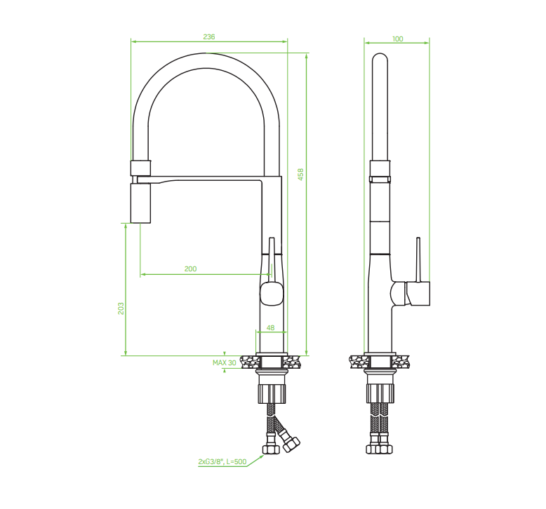 Bateria kuchenna stojąca z elastyczną wylewką COLINA czarna