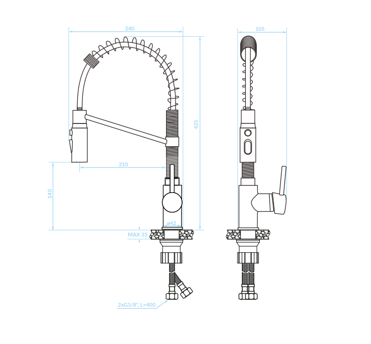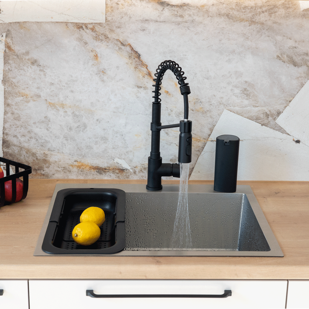 Elastyczna wylewka, opleciona sprężyną, zapewnia pełną swobodę ruchu i precyzyjne kierowanie strumieniem wody, co znacząco ułatwia codzienne czynności w kuchni. Mycie naczyń, płukanie warzyw i owoców staje się prostsze i bardziej komfortowe, a pełna kontrola nad przepływem wody podnosi wygodę użytkowania.