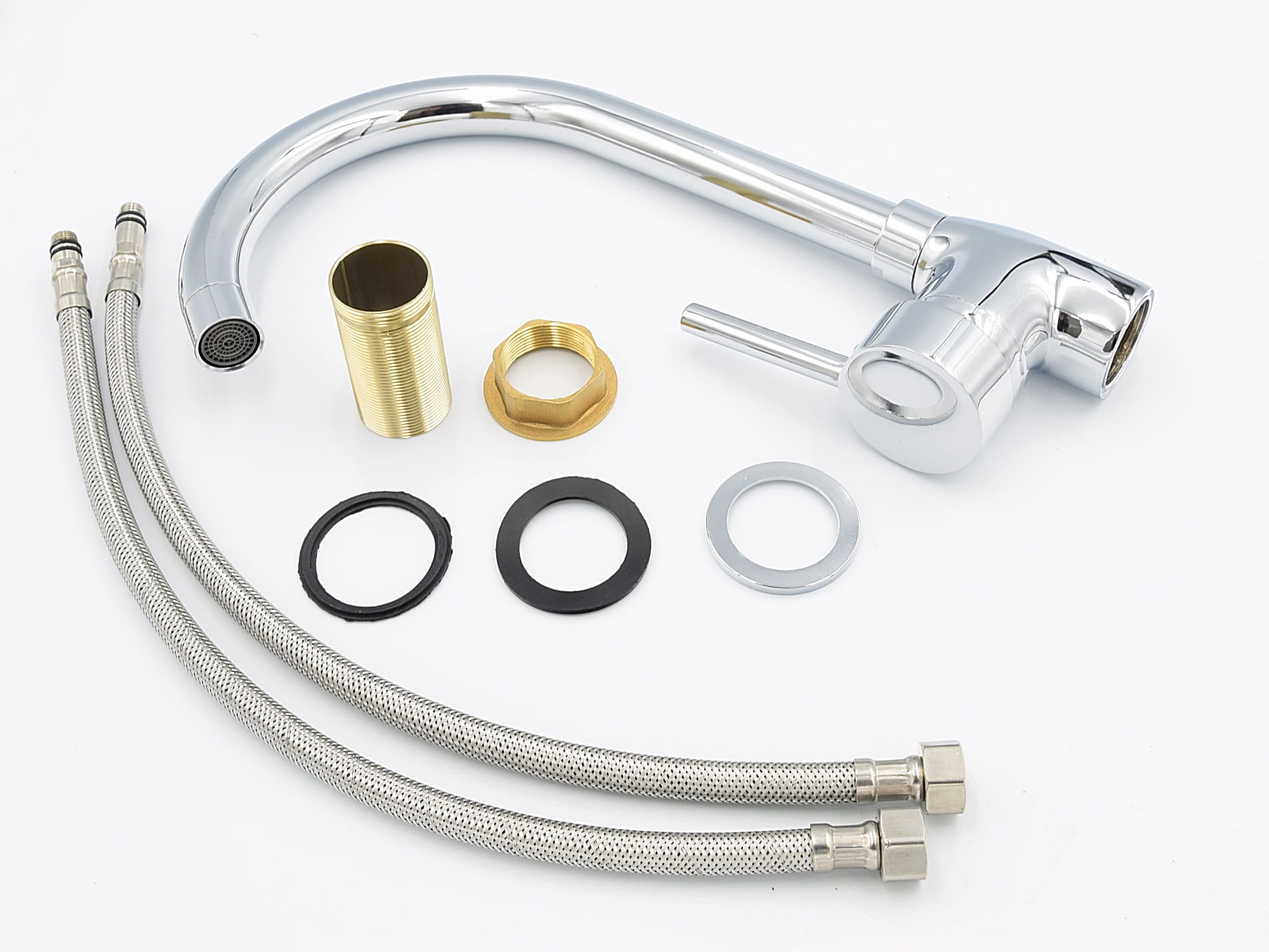 - Kolor: chrom – uniwersalne wykończenie pasujące do zlewów stalowych i granitowych.