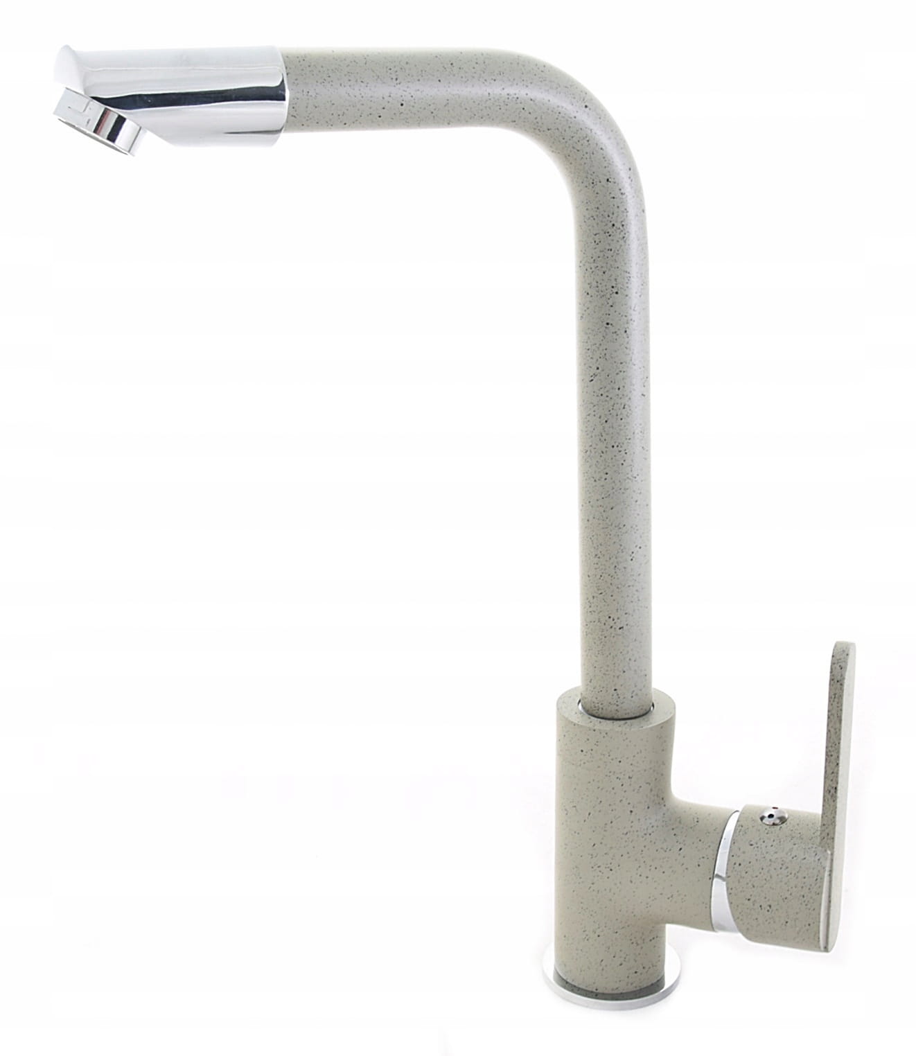 Bateria kuchenna zlewozmywakowa LAVRE MOVE w kolorze szarym nakrapianym łączy minimalistyczną formę z wysoką wygodą codziennego użytkowania. Prosta, kanciasta linia wylewki oraz stonowana kolorystyka sprawiają, że bateria idealnie komponuje się z nowoczesnymi zlewozmywakami granitowymi i stalowymi.