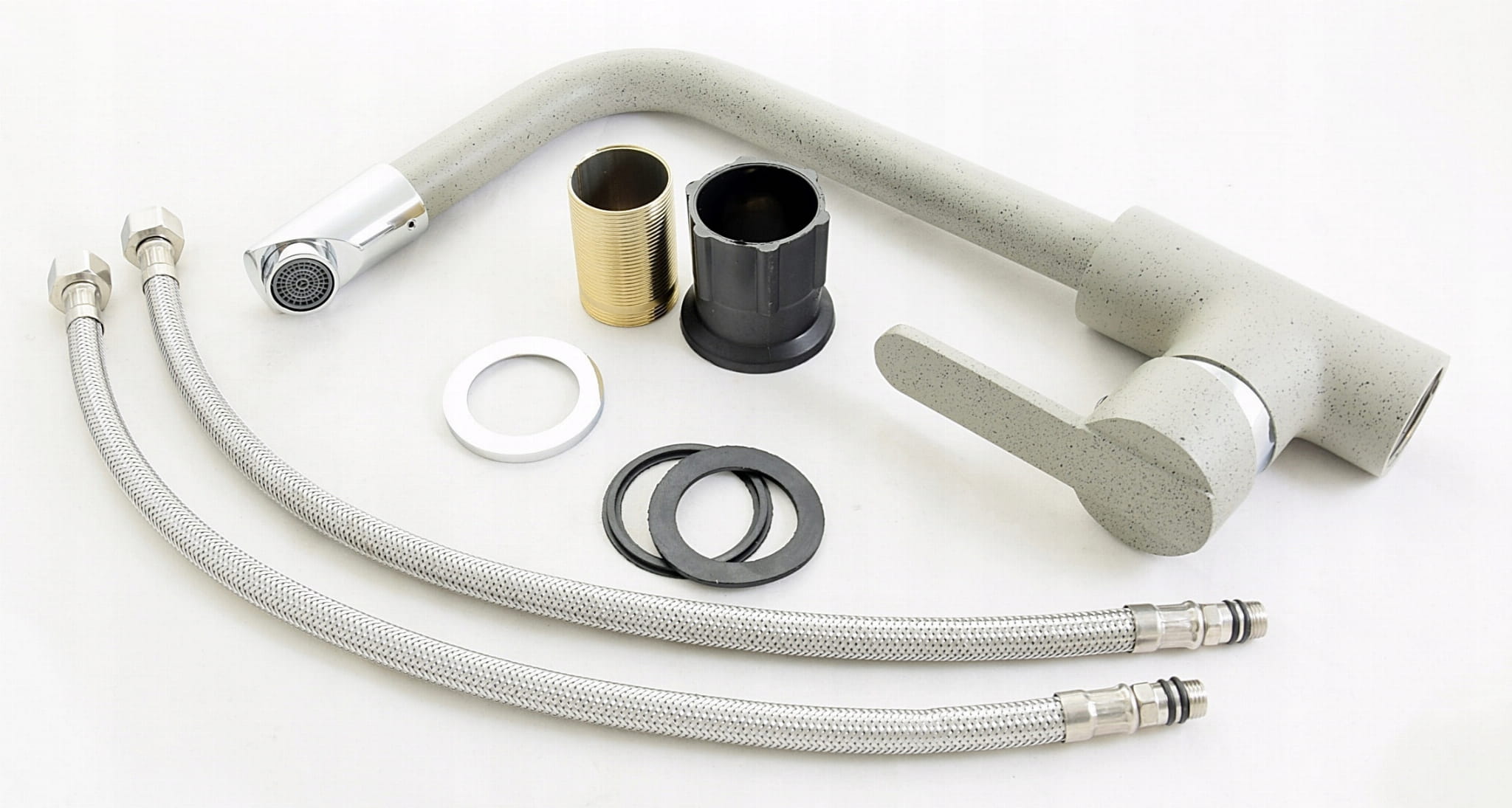 - Kompletny zestaw – wężyki przyłączeniowe i elementy montażowe w komplecie.