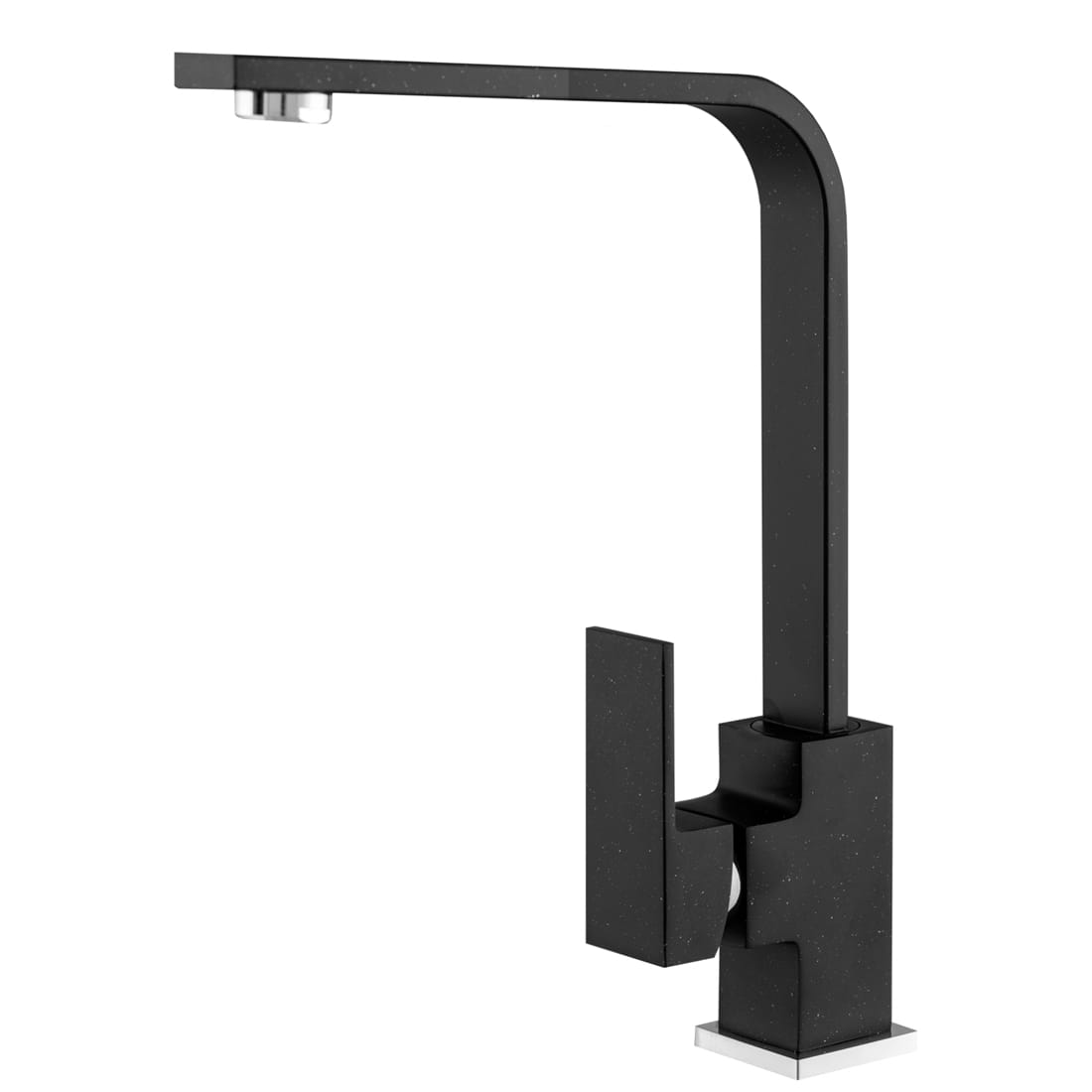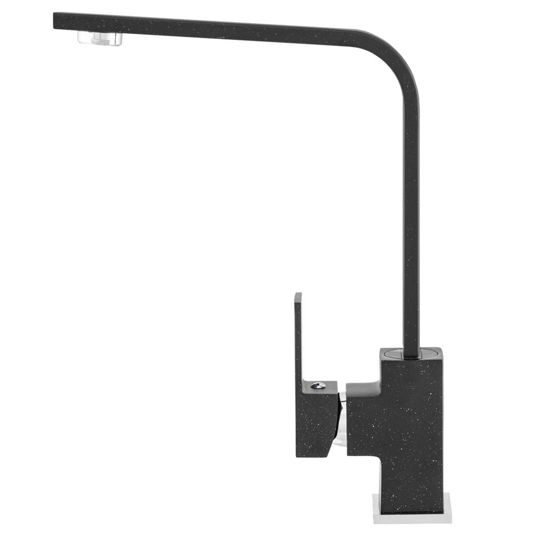 Bateria kuchenna zlewozmywakowa NOOK GRANIT CZARNA LAVRE łączy minimalistyczną, geometryczną formę z wysoką funkcjonalnością. Matowa powierzchnia w kolorze czarny nakrapiany doskonale komponuje się ze zlewozmywakami granitowymi i nowoczesnymi blatami, tworząc spójną, elegancką strefę zmywania.