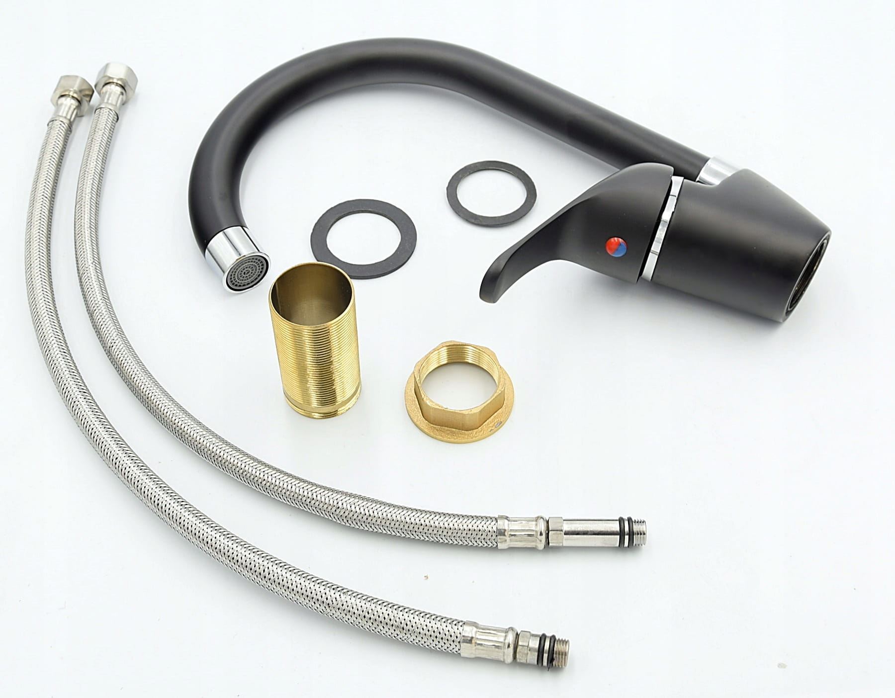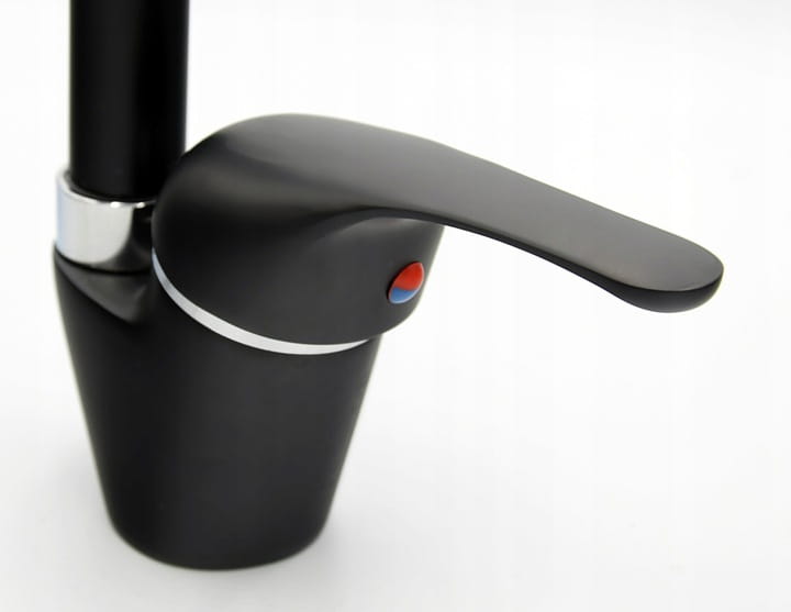 - Nowoczesny wygląd – czarna, matowa powierzchnia z chromowanymi detalami doskonale pasuje do zlewozmywaków stalowych i granitowych.