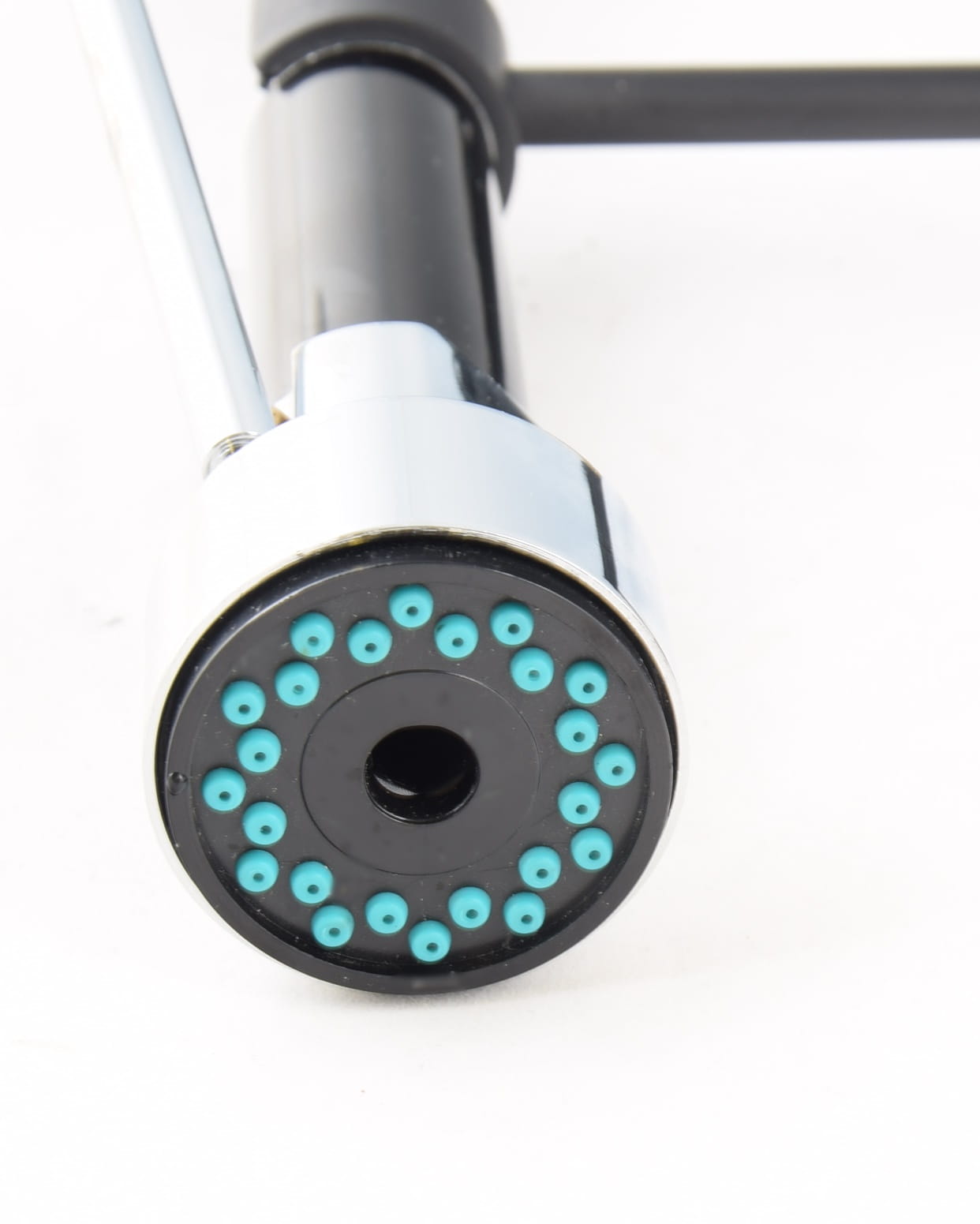 Czarna bateria kuchenna LAVRE SPIRAL DUO łączy profesjonalny wygląd baterii gastronomicznej z wygodą codziennego użytkowania w domowej kuchni. Wysoka, spiralna wylewka i dodatkowe ramię boczne ułatwiają mycie naczyń, płukanie warzyw oraz napełnianie garnków bez rozchlapywania wody.