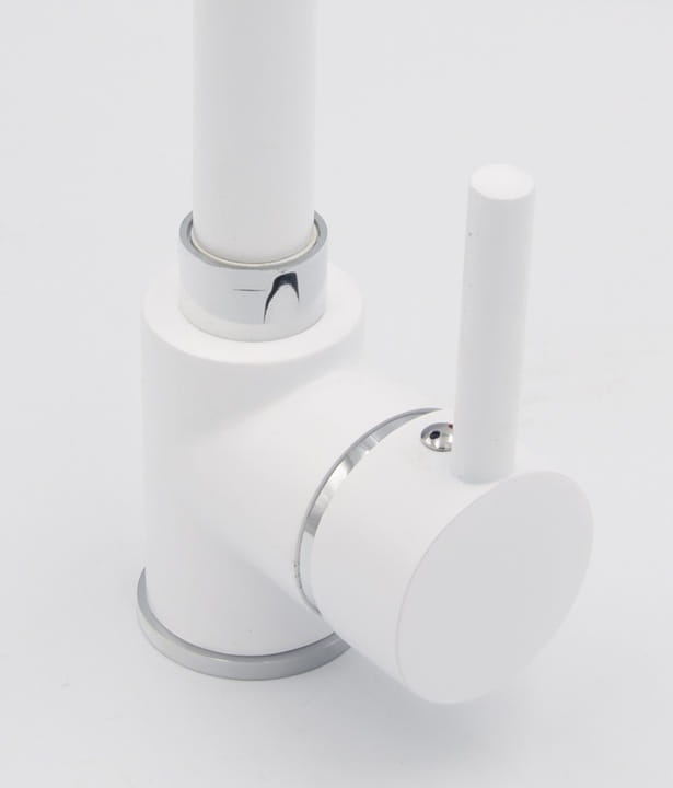Stojąca bateria kuchenna zlewozmywakowa STEEL BIAŁA LAVRE to połączenie solidnego wykonania z nowoczesnym, minimalistycznym designem. Gładka, biała powłoka z subtelnymi chromowanymi akcentami świetnie komponuje się z jasnymi i ciemnymi blatami, zlewami stalowymi i granitowymi.