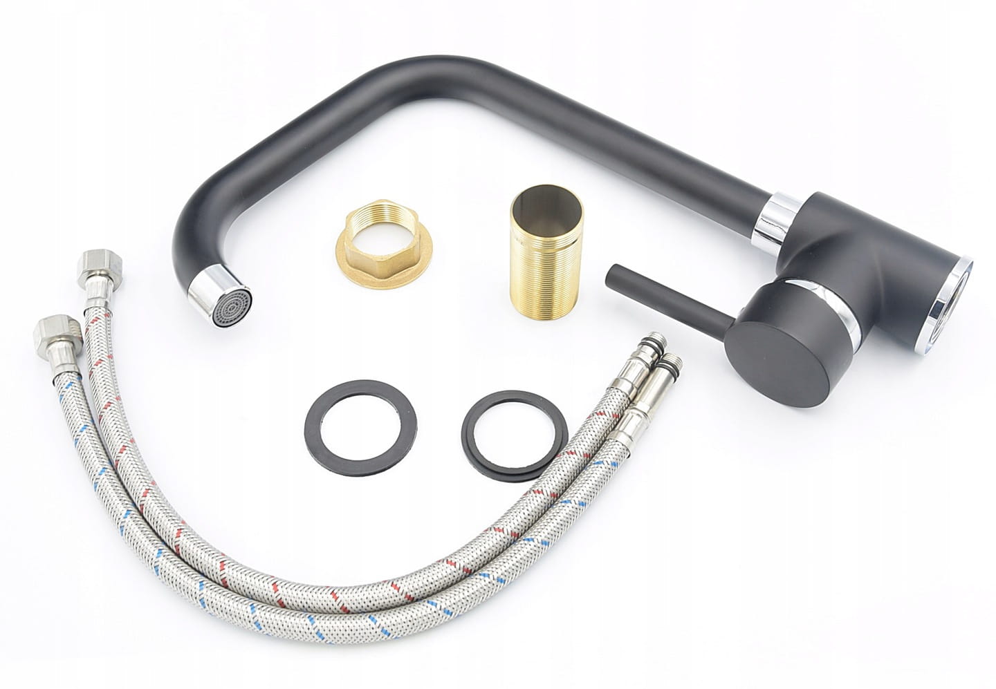 W komplecie otrzymujesz wszystko, co jest potrzebne do samodzielnego montażu baterii kuchennej zlewozmywakowej w standardowym zlewie.