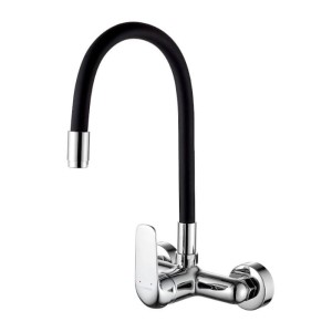 Bateria kuchenna zlewozmywakowa ścienna z elastyczną wylewką ELZA CHROM/CZARNA