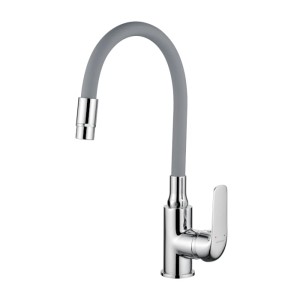 Bateria kuchenna zlewozmywakowa stojąca KUCHINOX ELZA CHROM/SZARA łączy funkcjonalność z nowoczesną estetyką. Chromowany korpus w połączeniu z szarą, elastyczną wylewką tworzy elegancki akcent, który podkreśli charakter współczesnej kuchni.