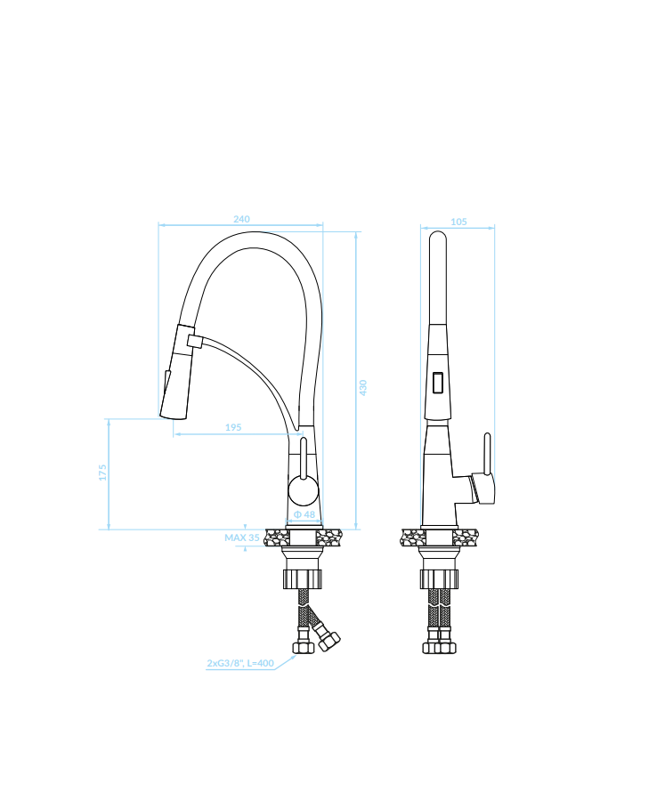 - Bateria kuchenna z elastyczną wylewką z mocowaniem magnetycznym