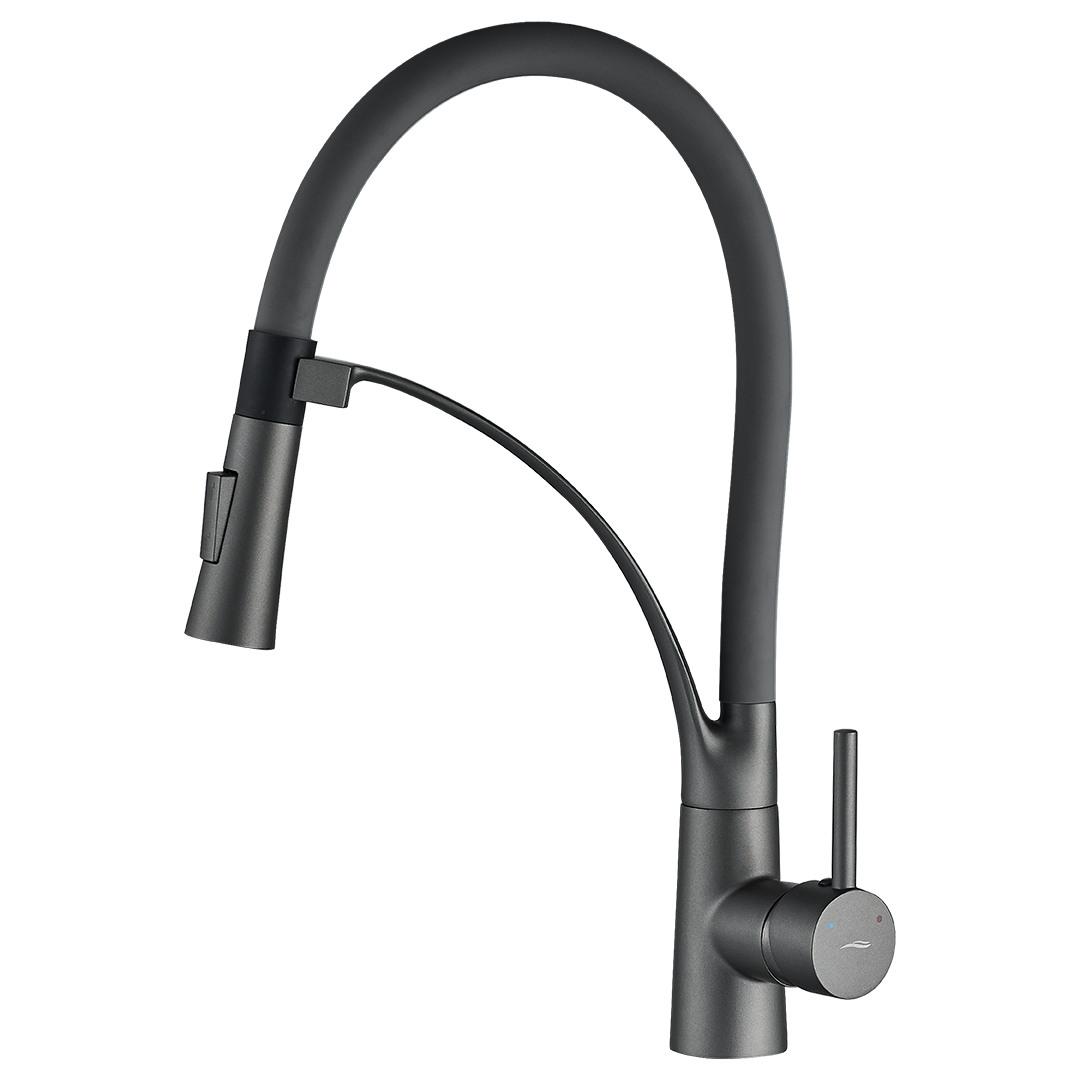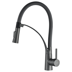 Bateria Olor w kolorze grafitowym, inaczej nazywanym gun metal to idealne połączenie inteligentnych rozwiązań, designu i oszczędności wody. Zaprojektowana z myślą o osobach, które cenią estetykę i praktyczność, doskonale wpisuje się w nowoczesne przestrzenie kuchenne, oferując wygodę w codziennym użytkowaniu.