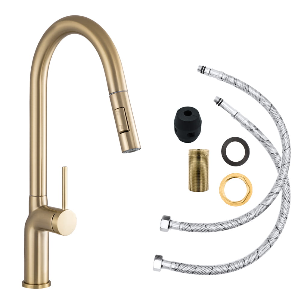 Bateria zlewozmywakowa stojąca z wyciąganą wylewką VERA Brushed gold