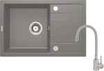 Deante Zlewozmywak granitowy CORIO SZARY METALIK z baterią 1-komorowy z ociekaczem