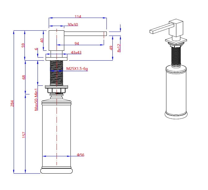 Dozownik można zamontować w blacie, tuż obok zlewu, lub bezpośrednio na nim. Dzięki temu płyn jest zawsze pod ręką, a na blacie nie stoją nieestetyczne butelki.