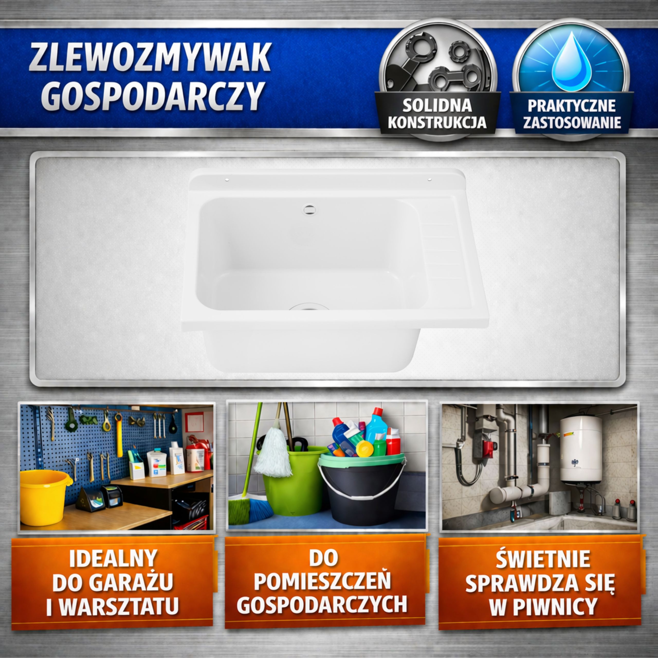 Zlew gospodarczy z szafką – trwały i funkcjonalny zestaw do garażu, pralni i warsztatu