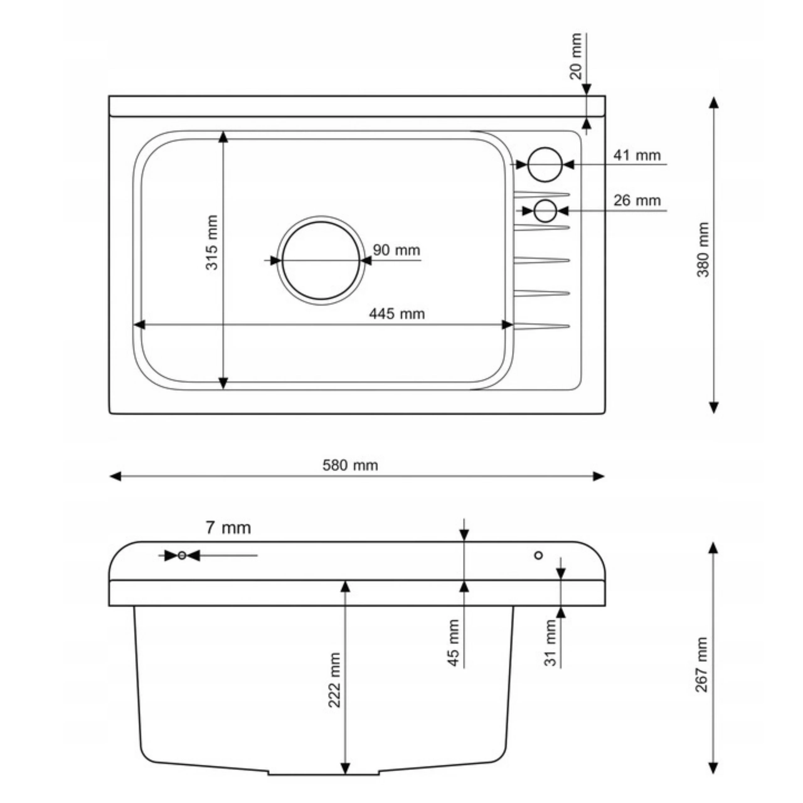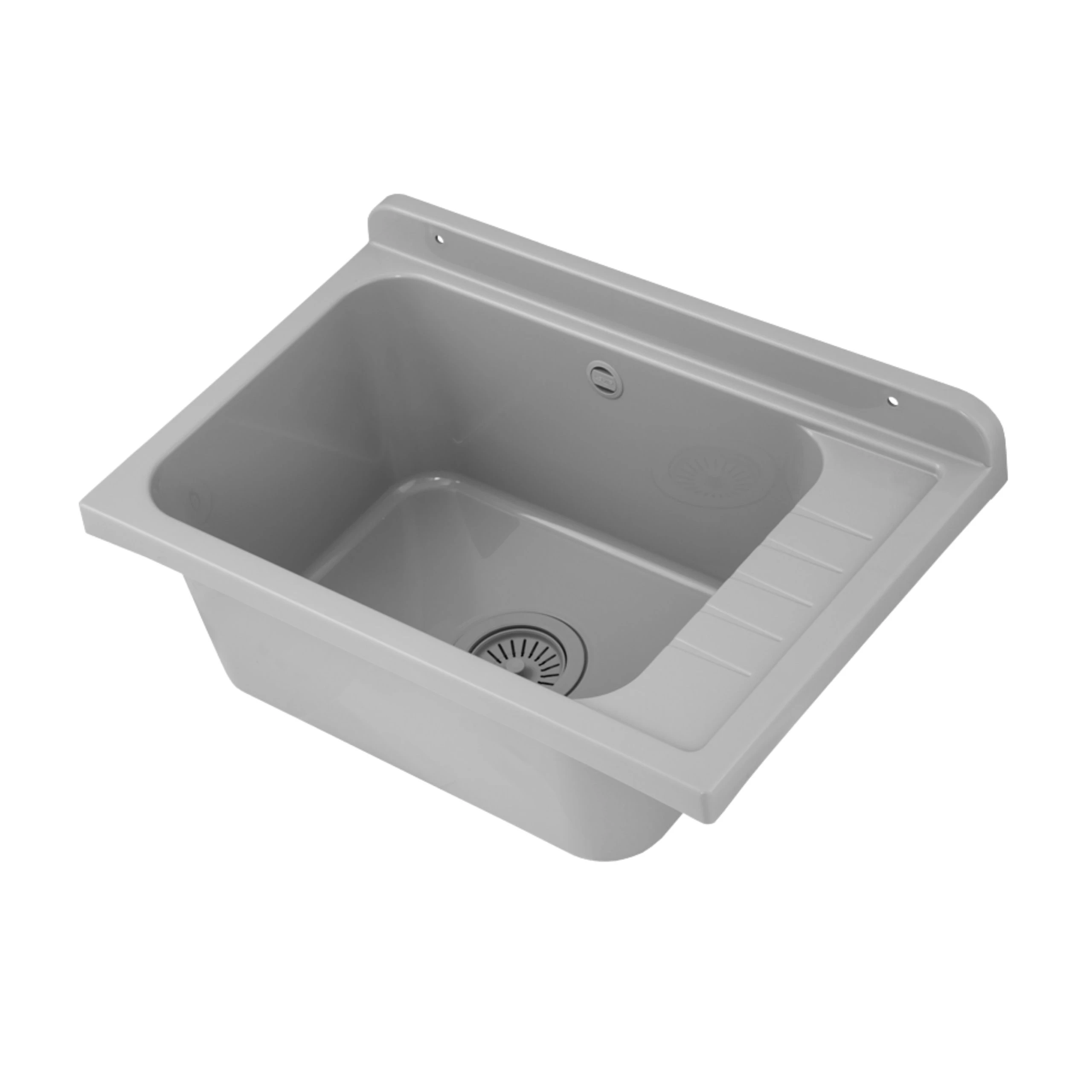 Materiał komory to polipropylen – tworzywo o wysokiej odporności na różne substancje i związki chemiczne oraz na podwyższone temperatury. Dzięki temu zlew gospodarczy nie odbarwia się i nie ulega szybkiemu zużyciu nawet przy częstym kontakcie z detergentami, środkami piorącymi czy preparatami do sprzątania.