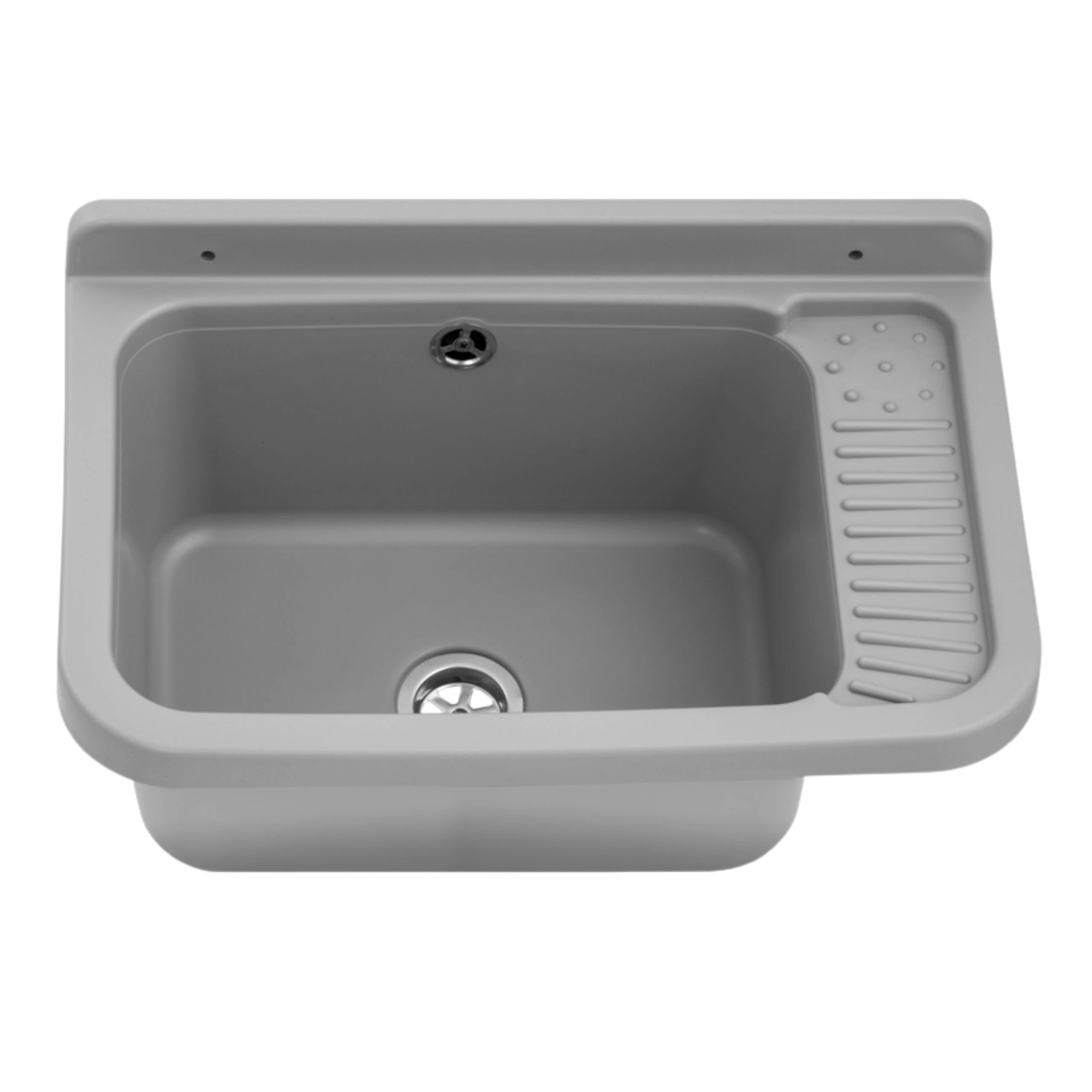 - zlewozmywak gospodarczy z polipropylenu w kolorze szarym,