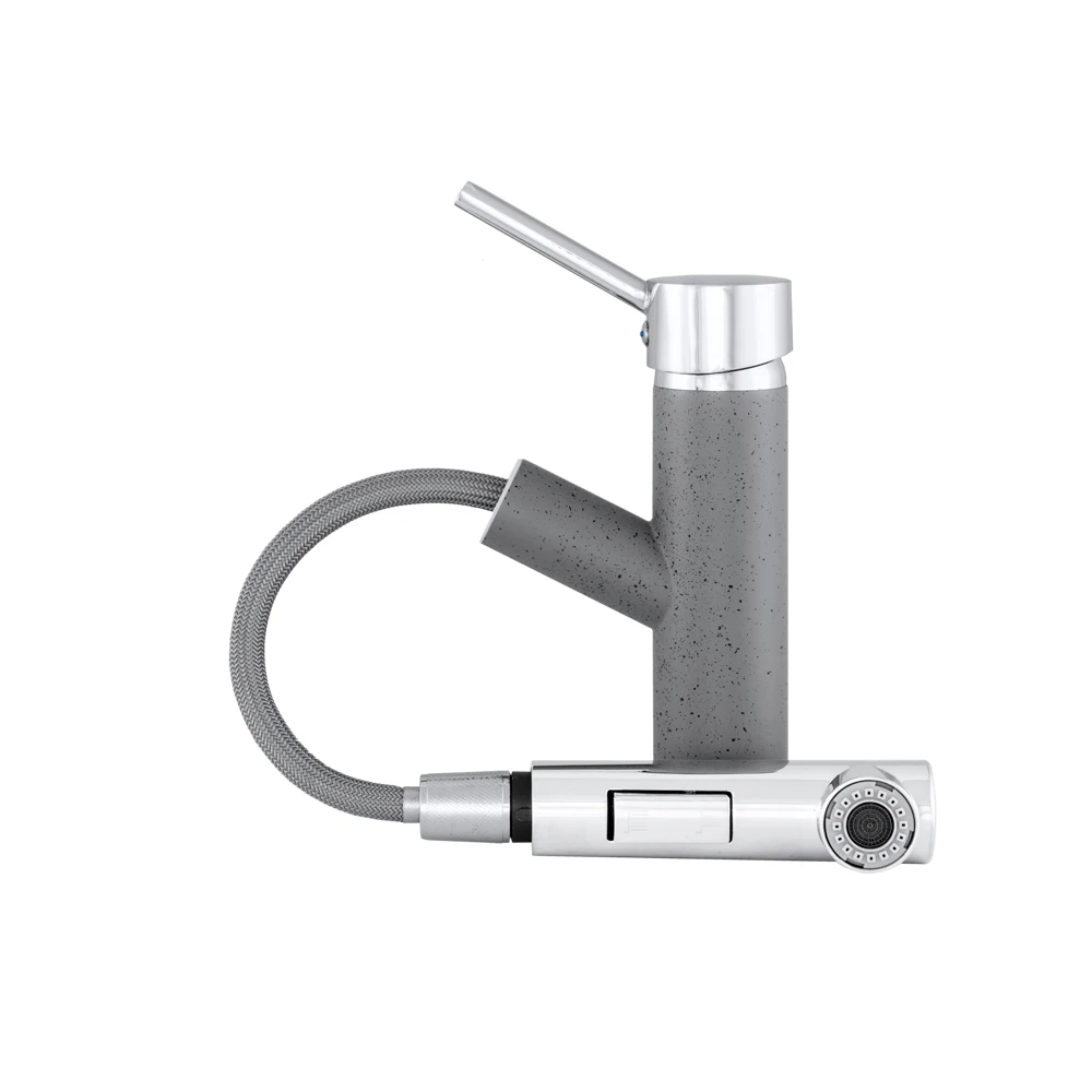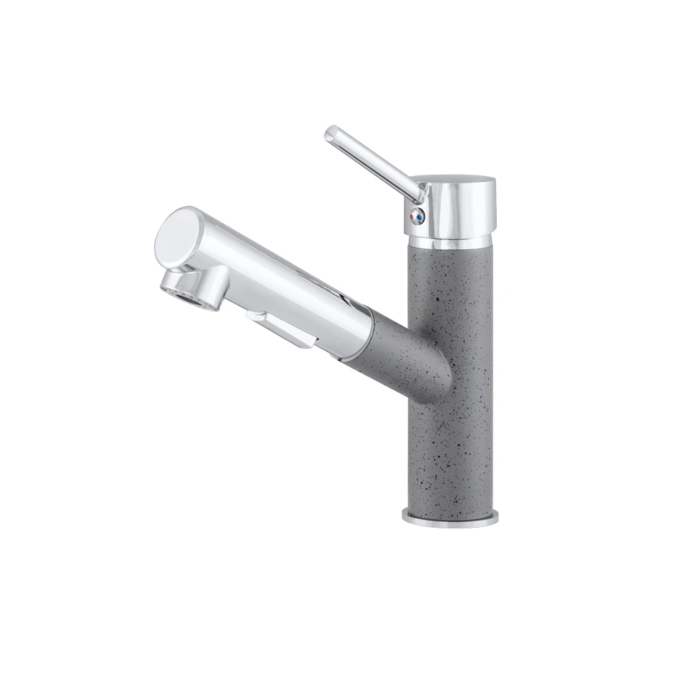 Bateria kuchenna zlewozmywakowa z wyciąganą wylewką CADO SZARA marki LAVRE łączy nowoczesny wygląd z praktycznymi rozwiązaniami do codziennej pracy w kuchni. Kompaktowa forma, eleganckie połączenie szarości z chromem oraz wyciągana wylewka sprawiają, że bateria świetnie sprawdzi się przy zlewozmywakach jedno- i dwukomorowych.