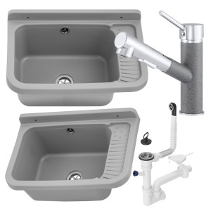Zlewozmywak gospodarczy GRADIA SZARY Bateria CADO SZARA z wyciąganą wylewką