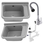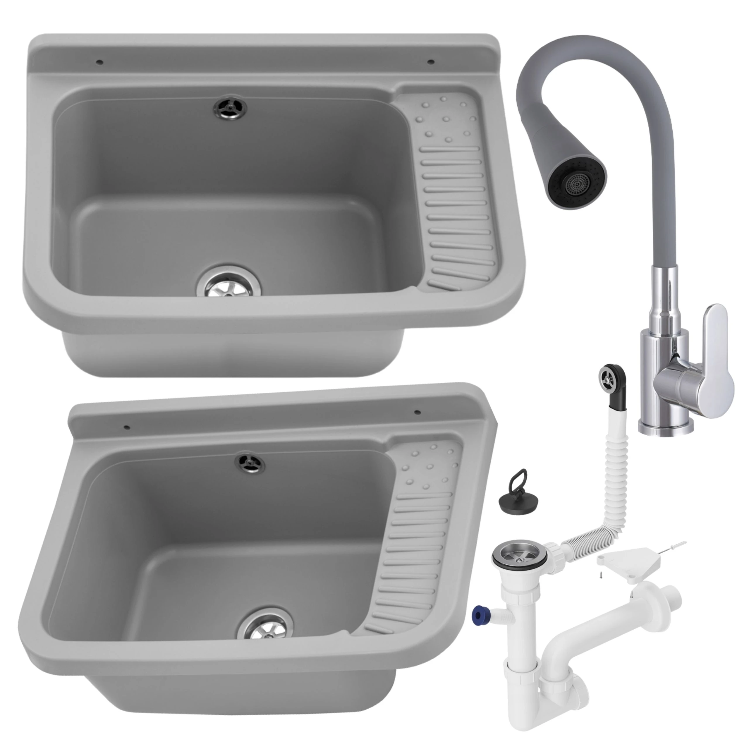 Zlewozmywak gospodarczy GRADIA SZARY Bateria stojąca FLEX elastyczna wylewka szara