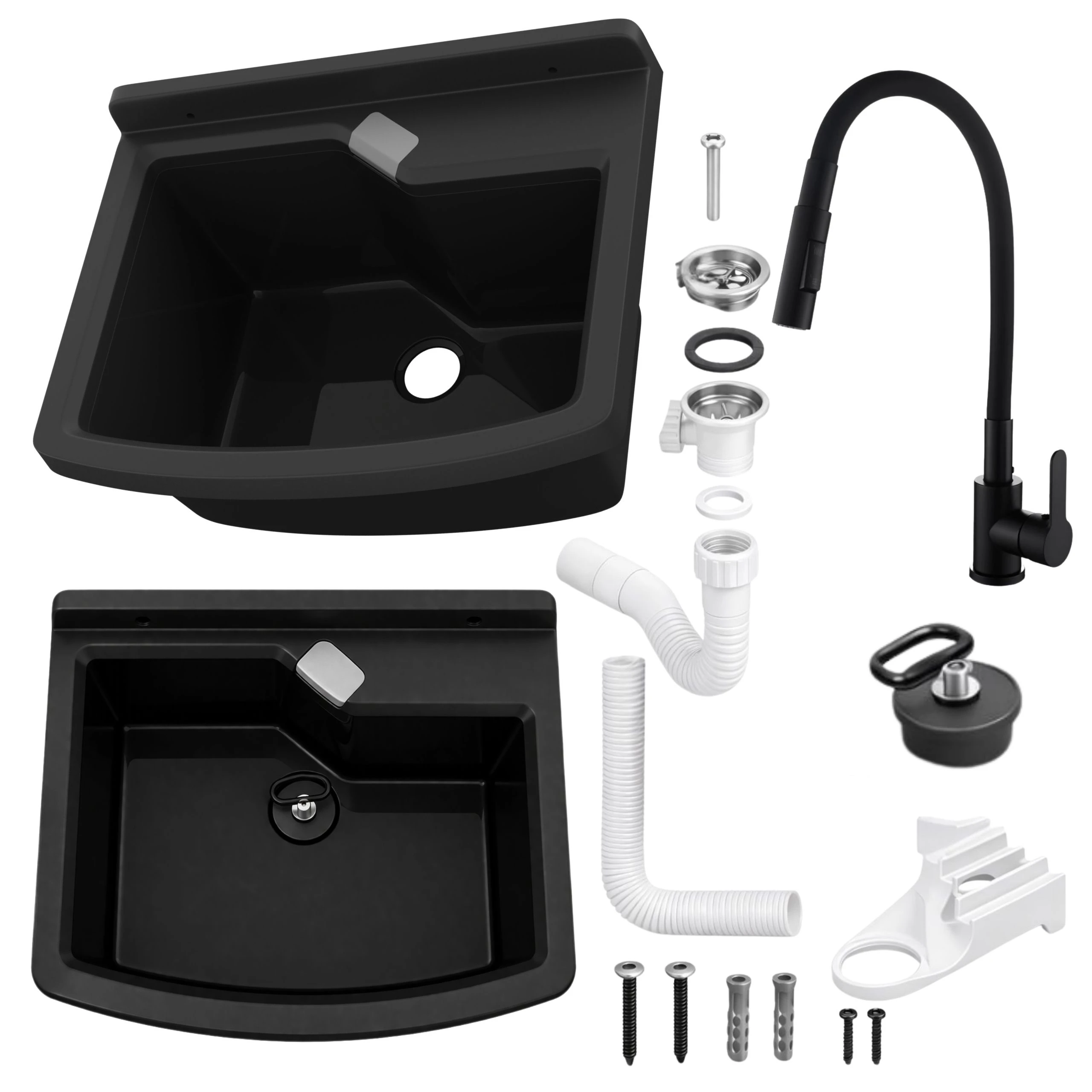 - zlewozmywak gospodarczy z polipropylenu w kolorze czarnym,