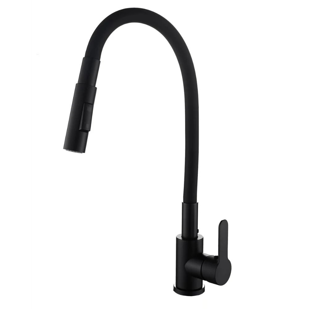 - Elastyczna / giętka wylewka – można ją dowolnie wyginać i ustawiać, co ułatwia mycie dużych naczyń oraz zlewozmywaków wielokomorowych.