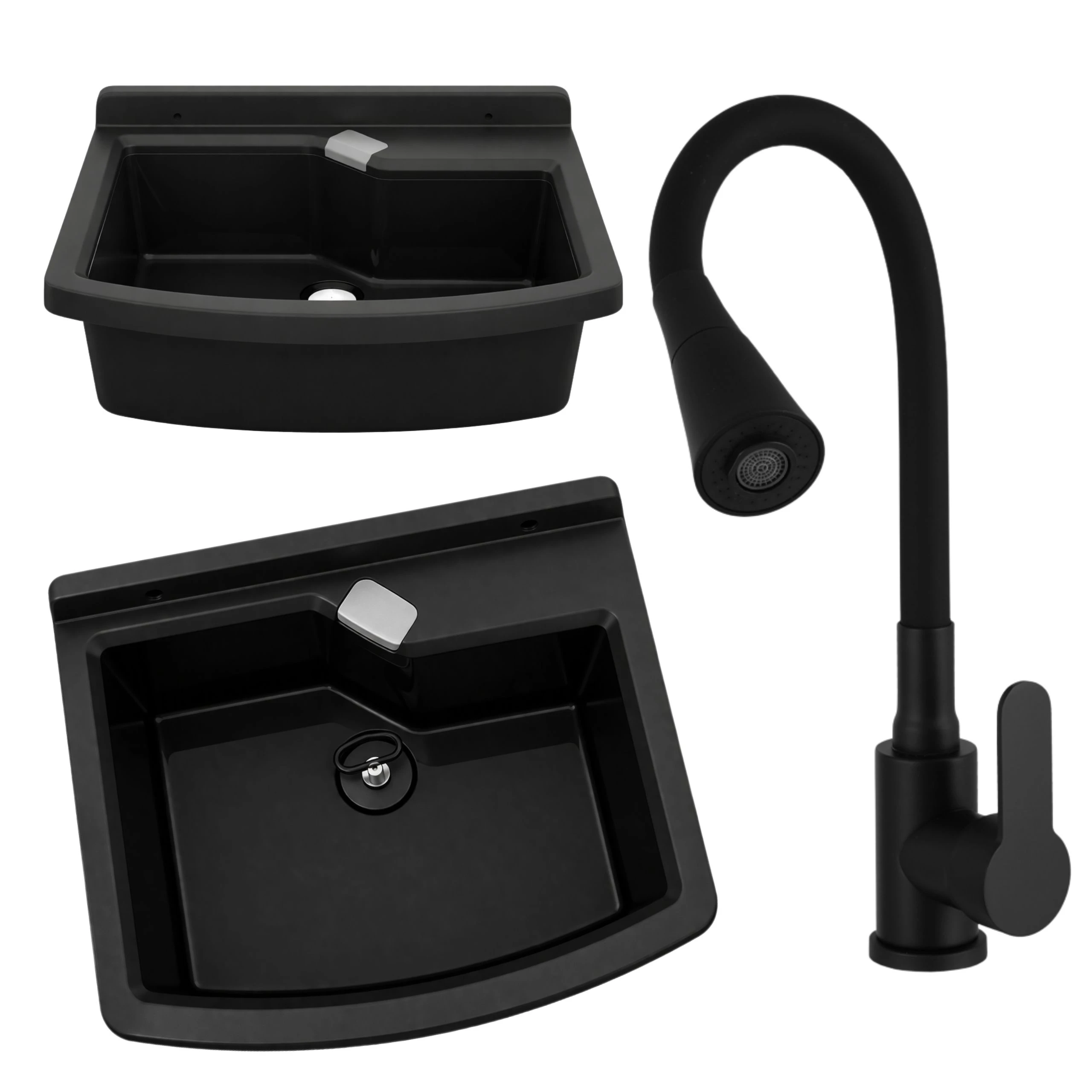 Zlewozmywak gospodarczy LIRA 50 cm CZARNY Bateria stojąca FLEX elastyczna wylewka czarna