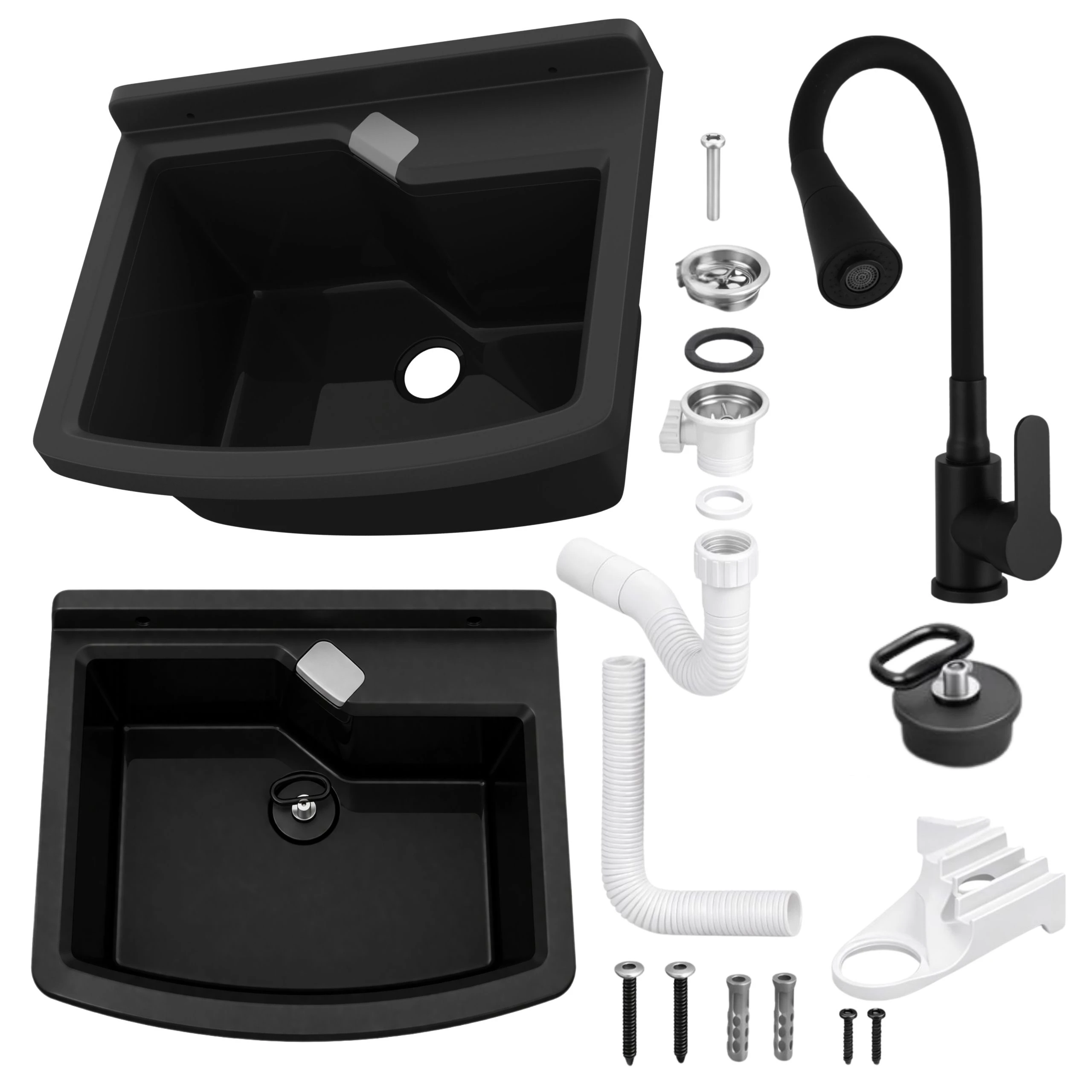 - zlewozmywak gospodarczy z polipropylenu w kolorze czarnym,