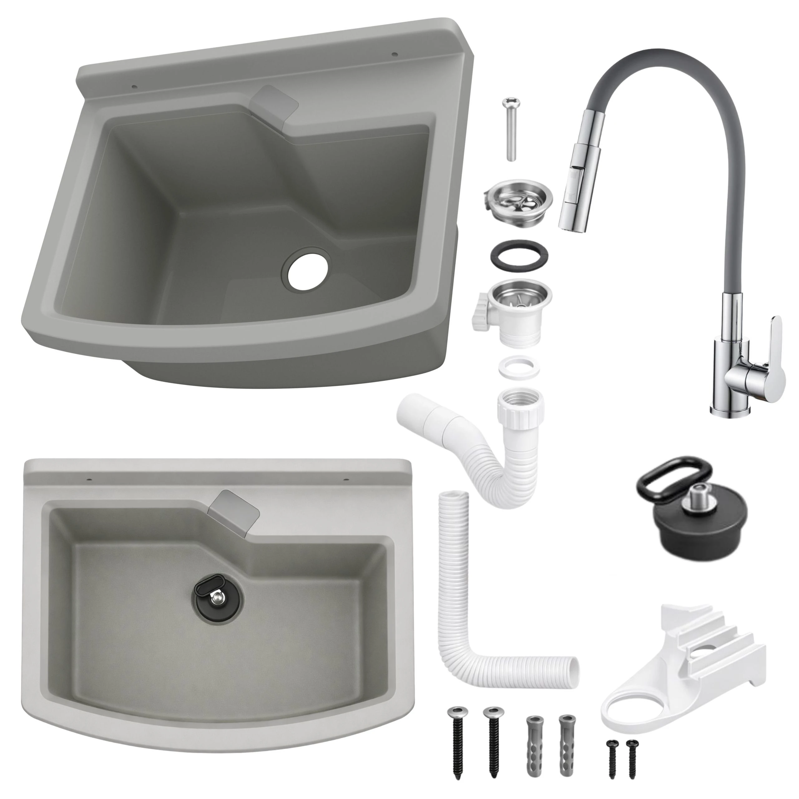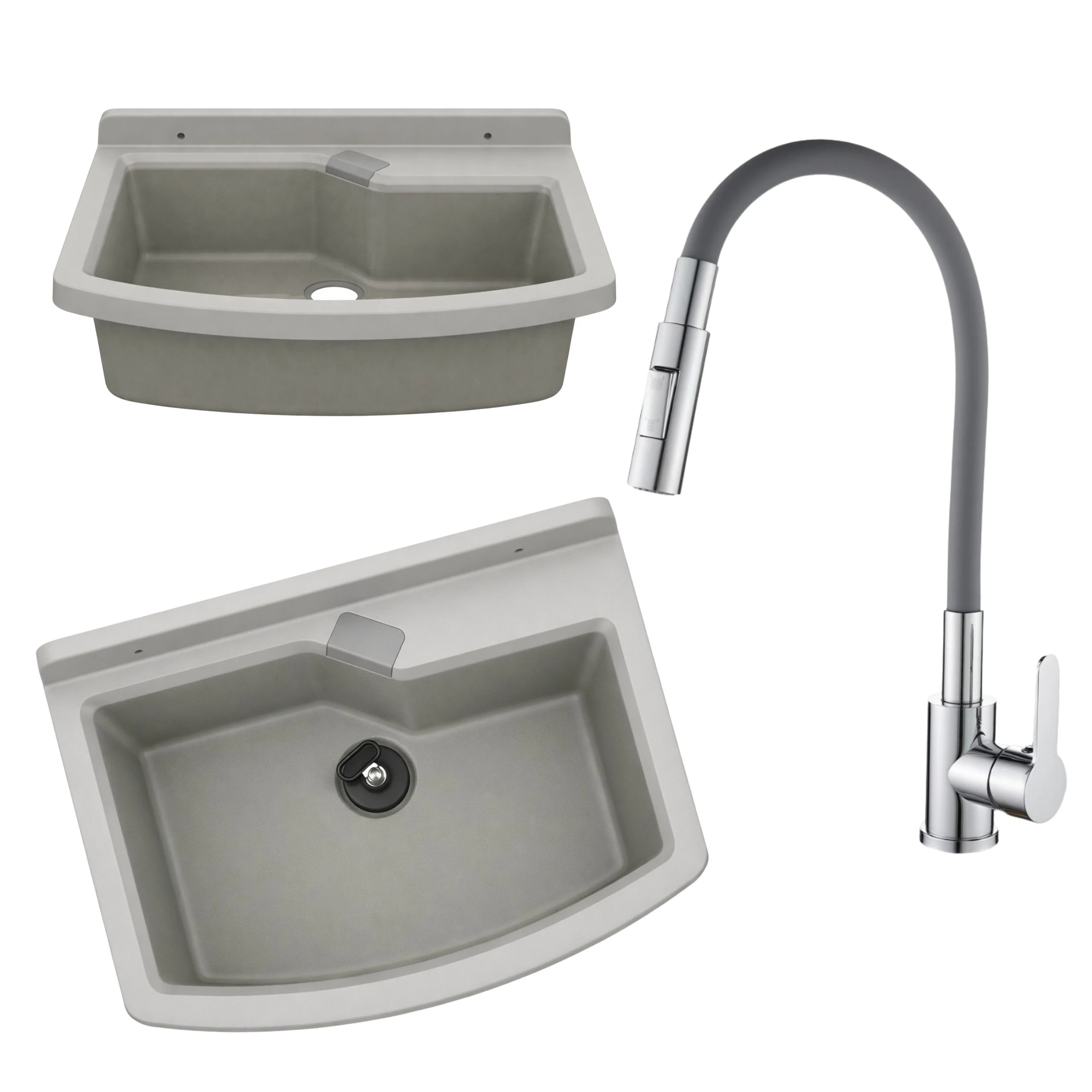 Zlewozmywak gospodarczy LIRA 50 cm SZARY Bateria stojąca FLEX elastyczna dwufunkcyjna wylewka