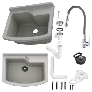 Zlew gospodarczy LIRA 50 cm z baterią FLEX dostarczany jest jako kompletny zestaw – po wyjęciu z pudełka masz wszystko, czego potrzebujesz do instalacji: