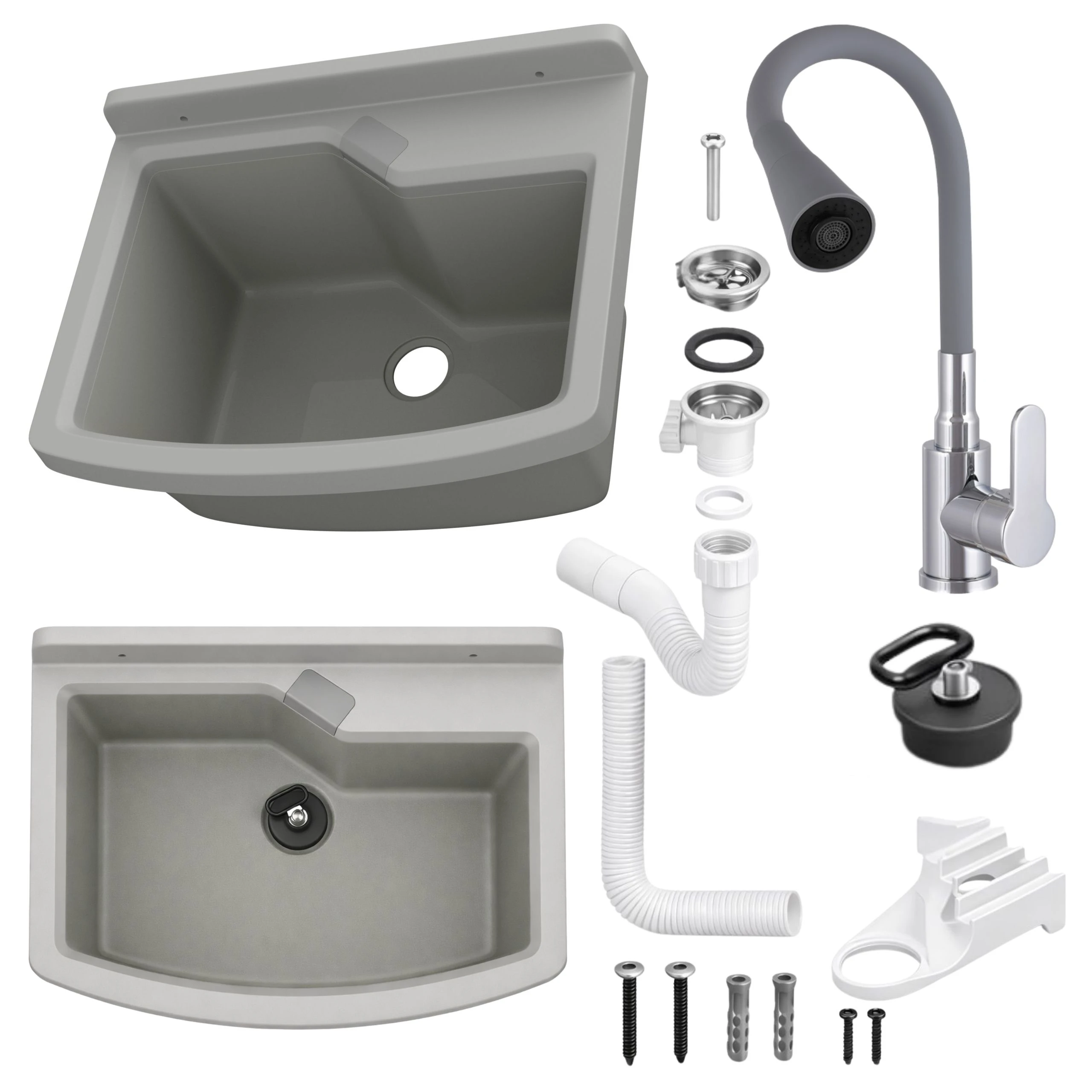 - zlewozmywak gospodarczy z polipropylenu w kolorze szarym,