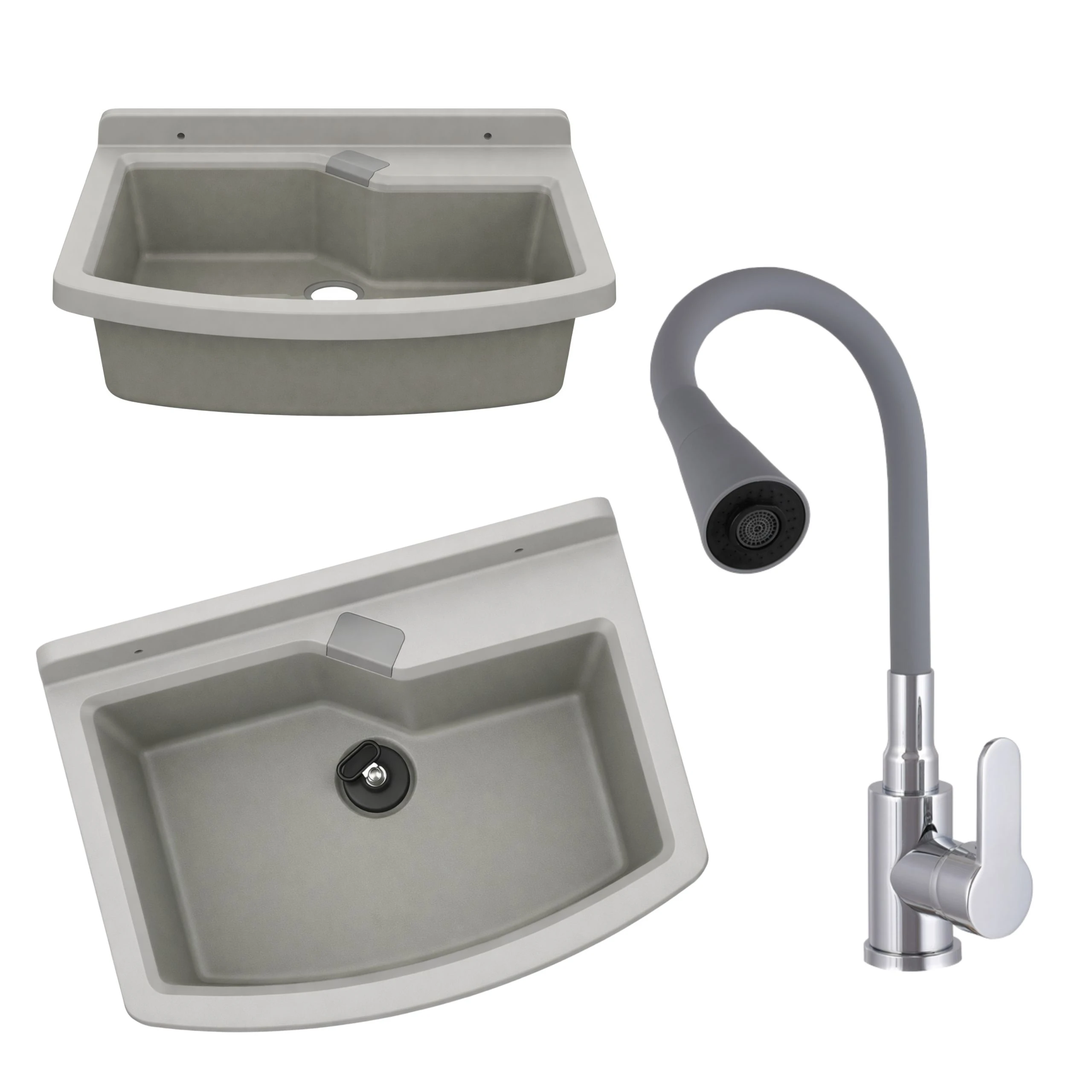Zlewozmywak gospodarczy LIRA 50 cm SZARY Bateria stojąca FLEX elastyczna wylewka szara