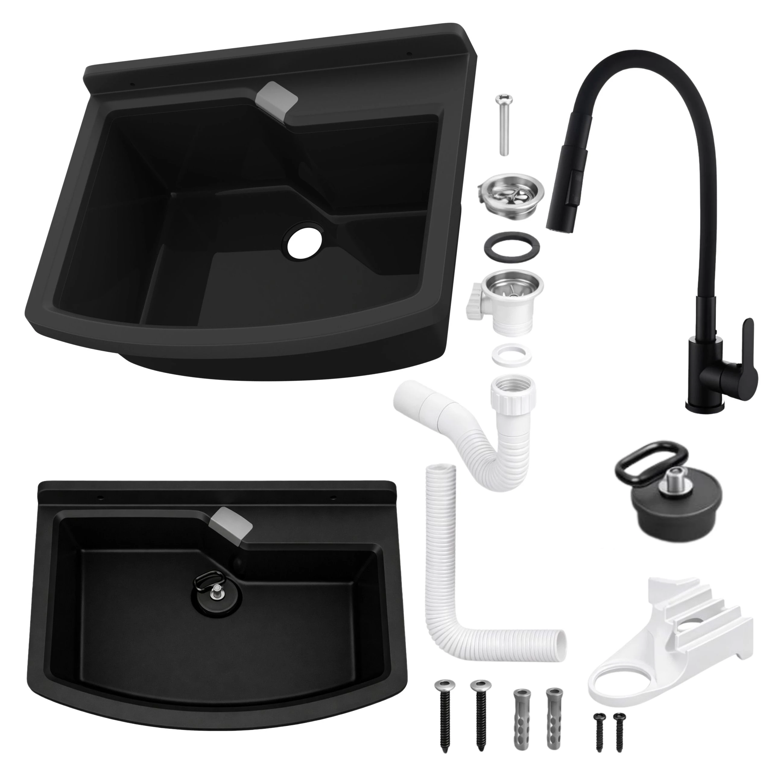 - zlewozmywak gospodarczy z polipropylenu w kolorze czarnym,