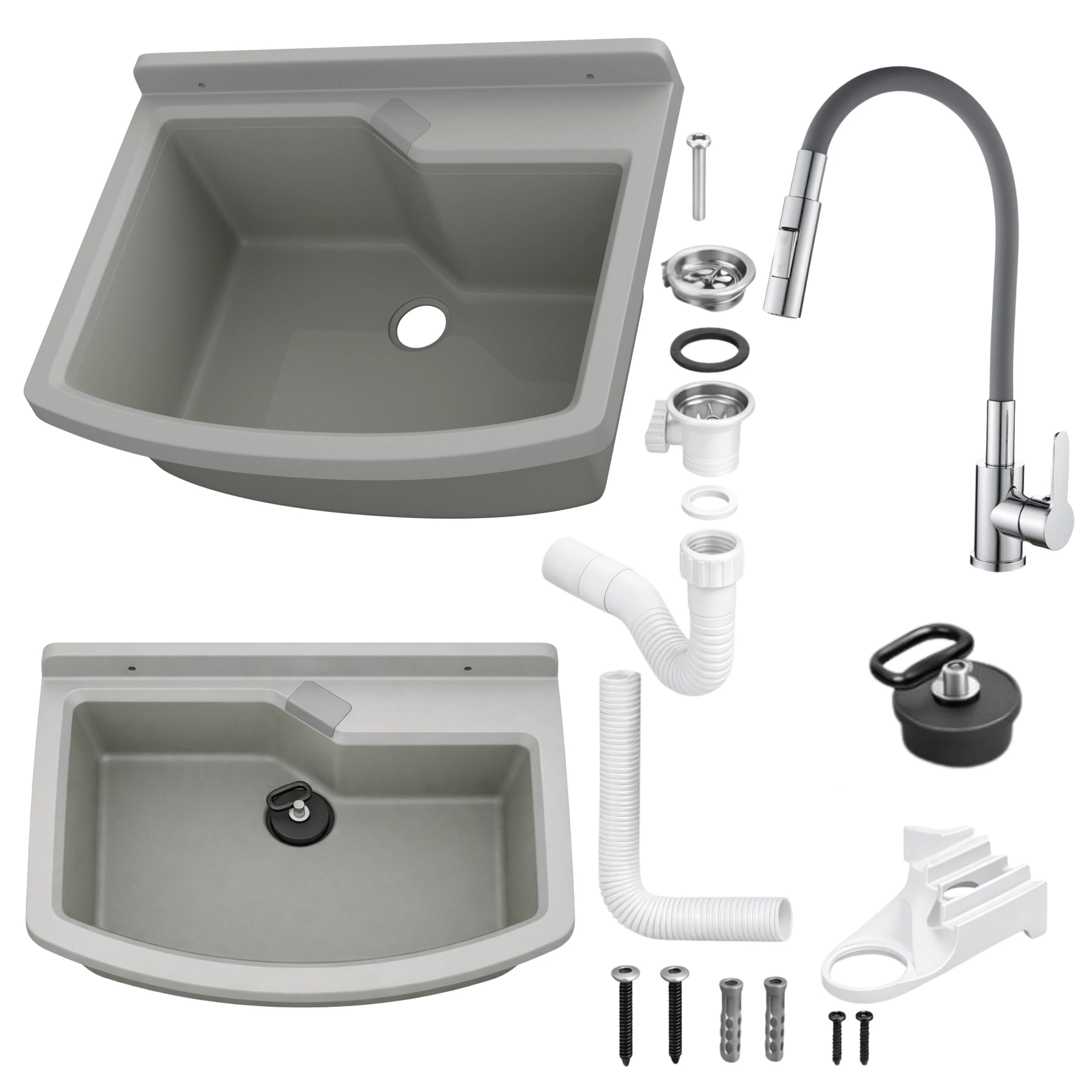 - zlewozmywak gospodarczy z polipropylenu w kolorze szarym,