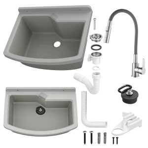 Zlewozmywak gospodarczy LIRA 60 cm w kolorze szarym z baterią stojącą FLEX to kompletny, gotowy do montażu zestaw polskiej marki LAVRE, zaprojektowany z myślą o intensywnym użytkowaniu w pomieszczeniach gospodarczych i technicznych. Wytrzymała komora z polipropylenu oraz bateria z elastyczną wylewką tworzą funkcjonalne stanowisko do mycia, płukania i prac porządkowych.
