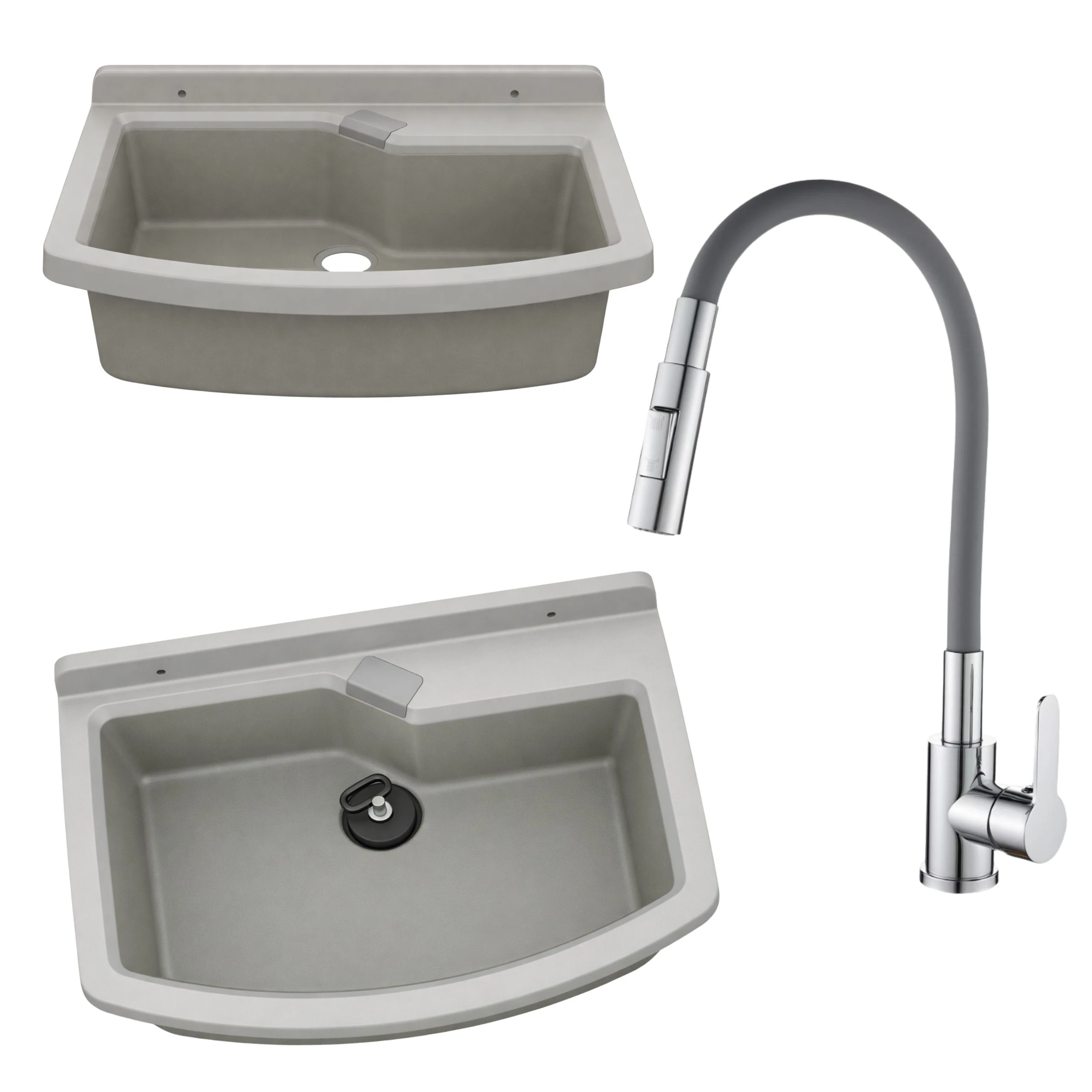 Zlewozmywak gospodarczy LIRA 60 cm SZARY Bateria stojąca FLEX elastyczna dwufunkcyjna wylewka
