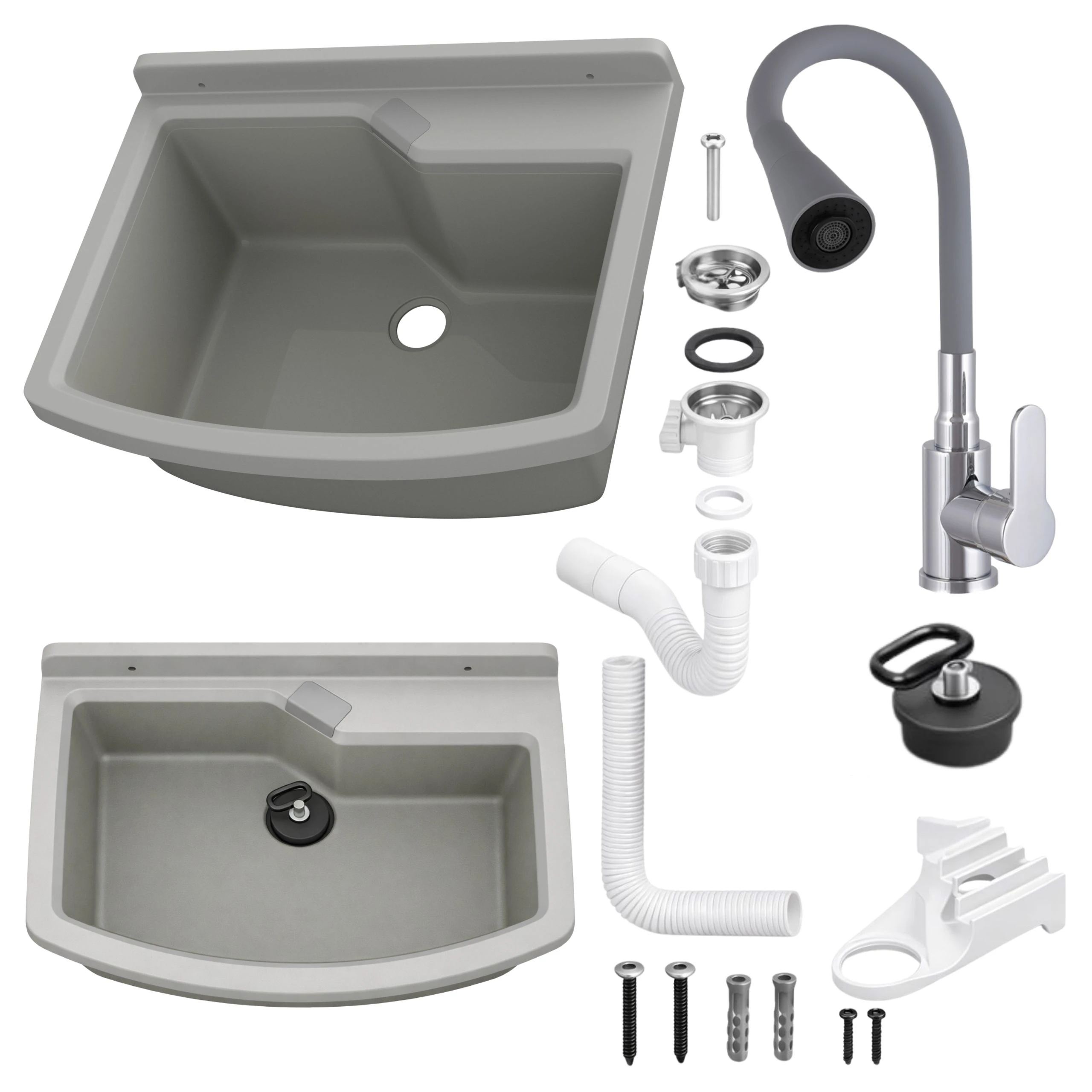 - zlewozmywak gospodarczy z polipropylenu w kolorze szarym,