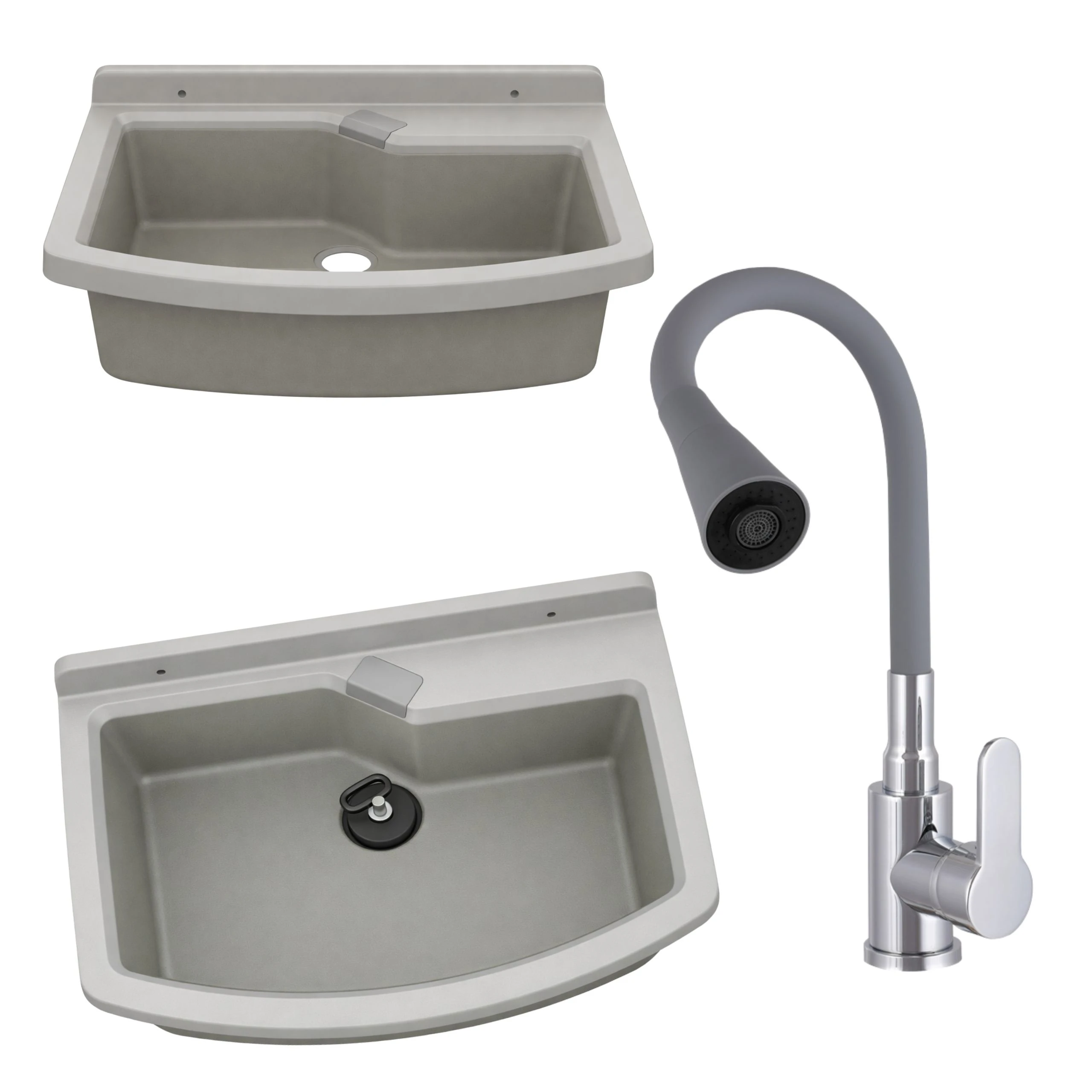 Zlewozmywak gospodarczy LIRA 60 cm SZARY Bateria stojąca FLEX elastyczna wylewka szara