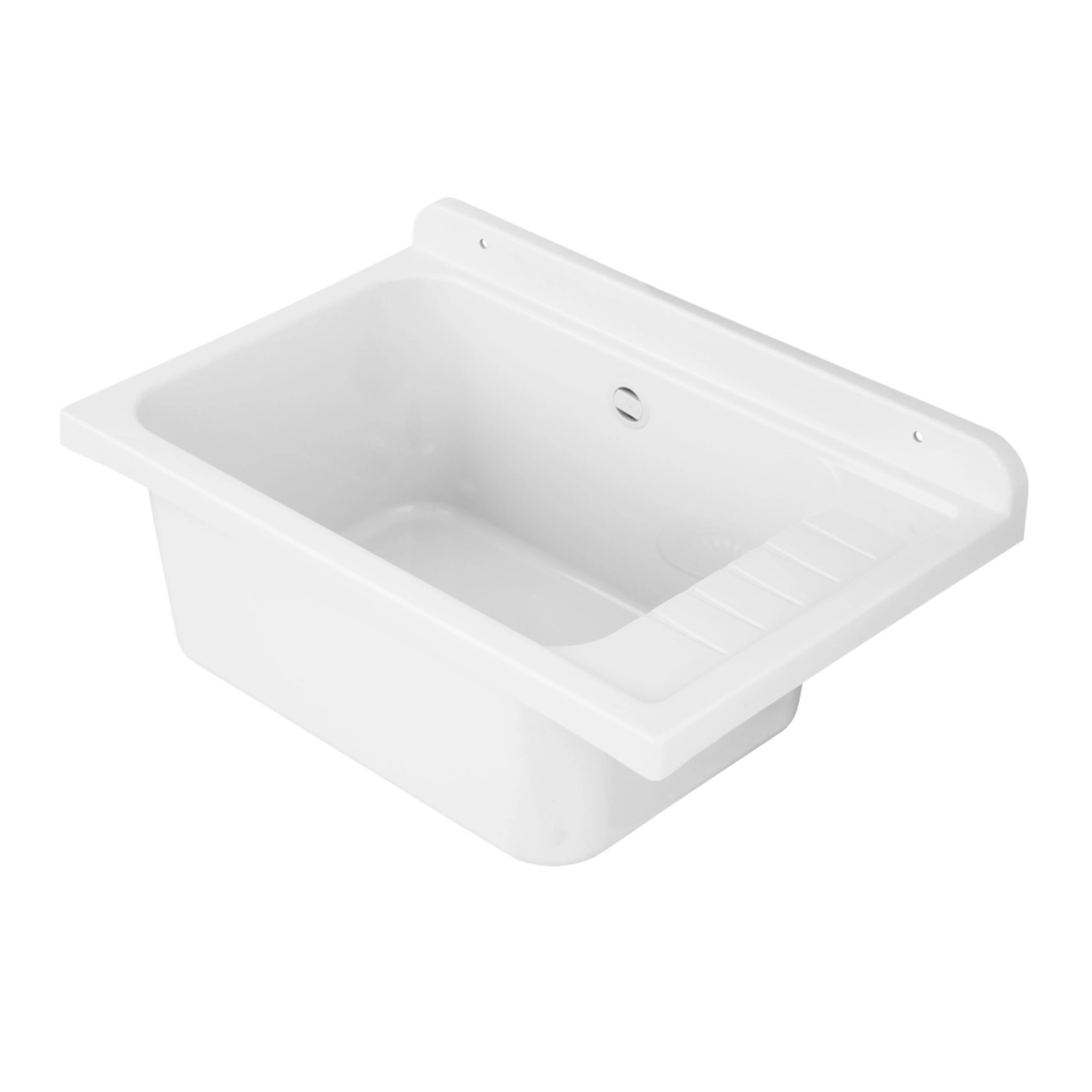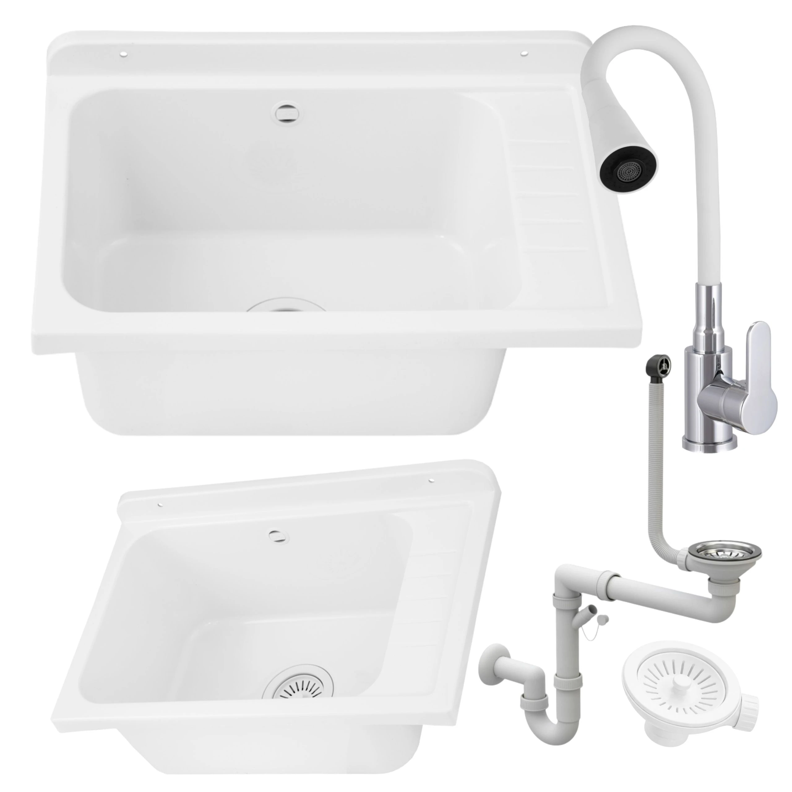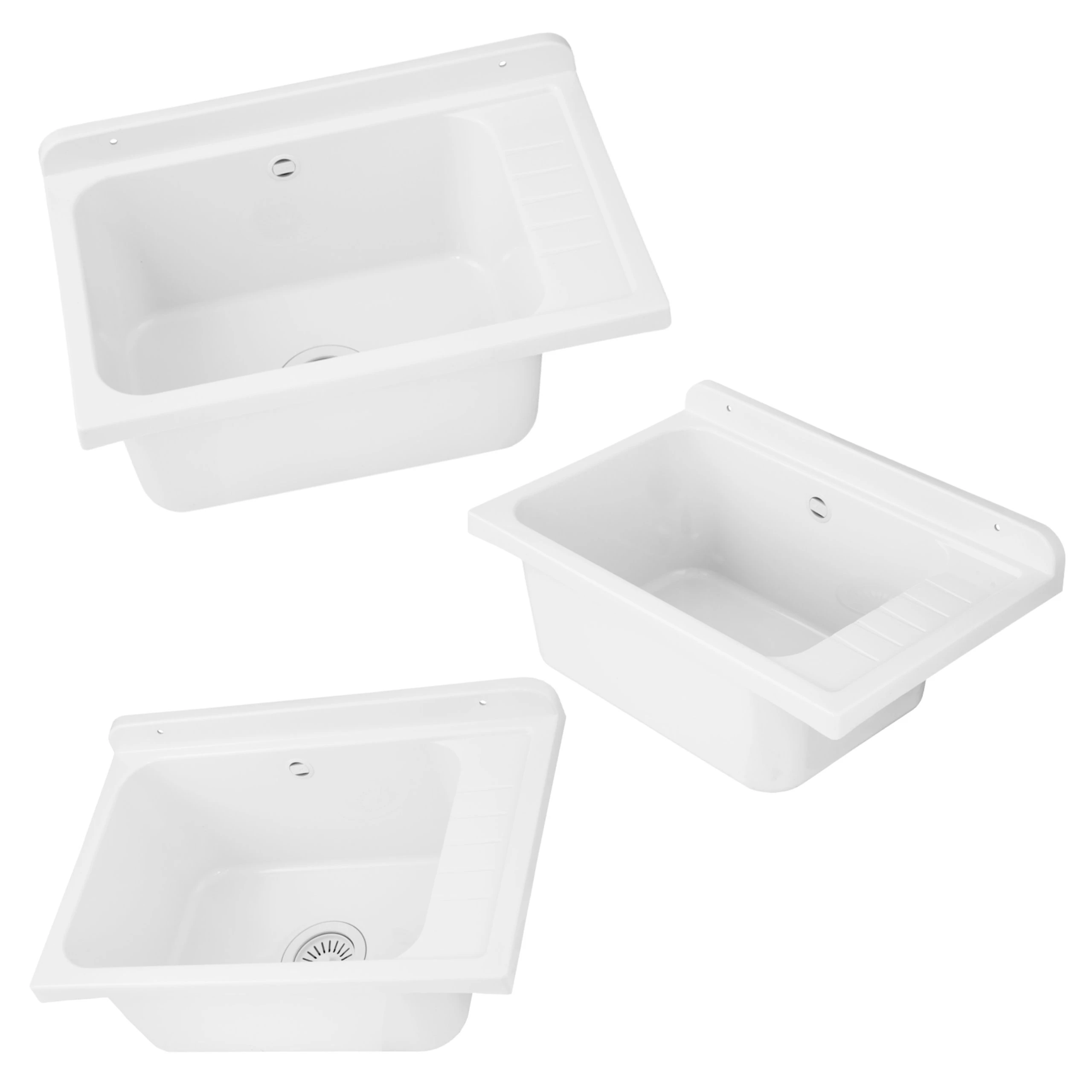- zlewozmywak gospodarczy z polipropylenu w kolorze białym,