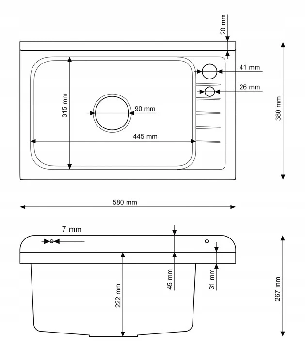 Komora gospodarcza została wykonana z wysokiej jakości polipropylenu, który cechuje się dużą odpornością na środki chemiczne oraz podwyższone temperatury. Materiał nie koroduje, nie odkształca się i jest łatwy do utrzymania w czystości – wystarczy standardowe mycie, aby zlew wyglądał estetycznie przez długi czas.