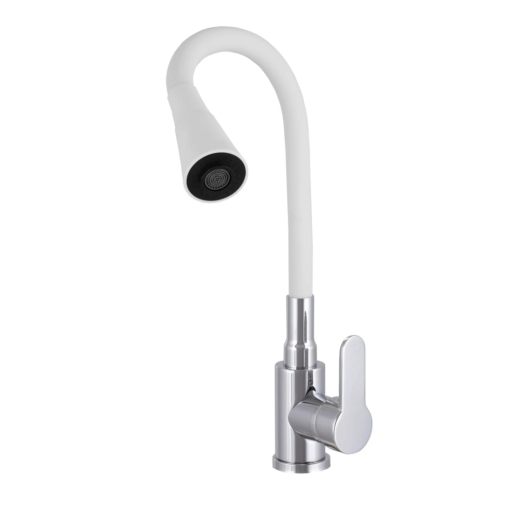 W zestawie znajduje się bateria stojąca FLEX w kolorze białym, idealnie dopasowana kolorystycznie do zlewu. Elastyczna wylewka umożliwia ustawienie strumienia wody dokładnie tam, gdzie jest potrzebny. Możesz ją wygodnie wygiąć nad duży garnek, blachę czy narożnik zlewu, a po skończonej pracy przywrócić do pierwotnego kształtu.