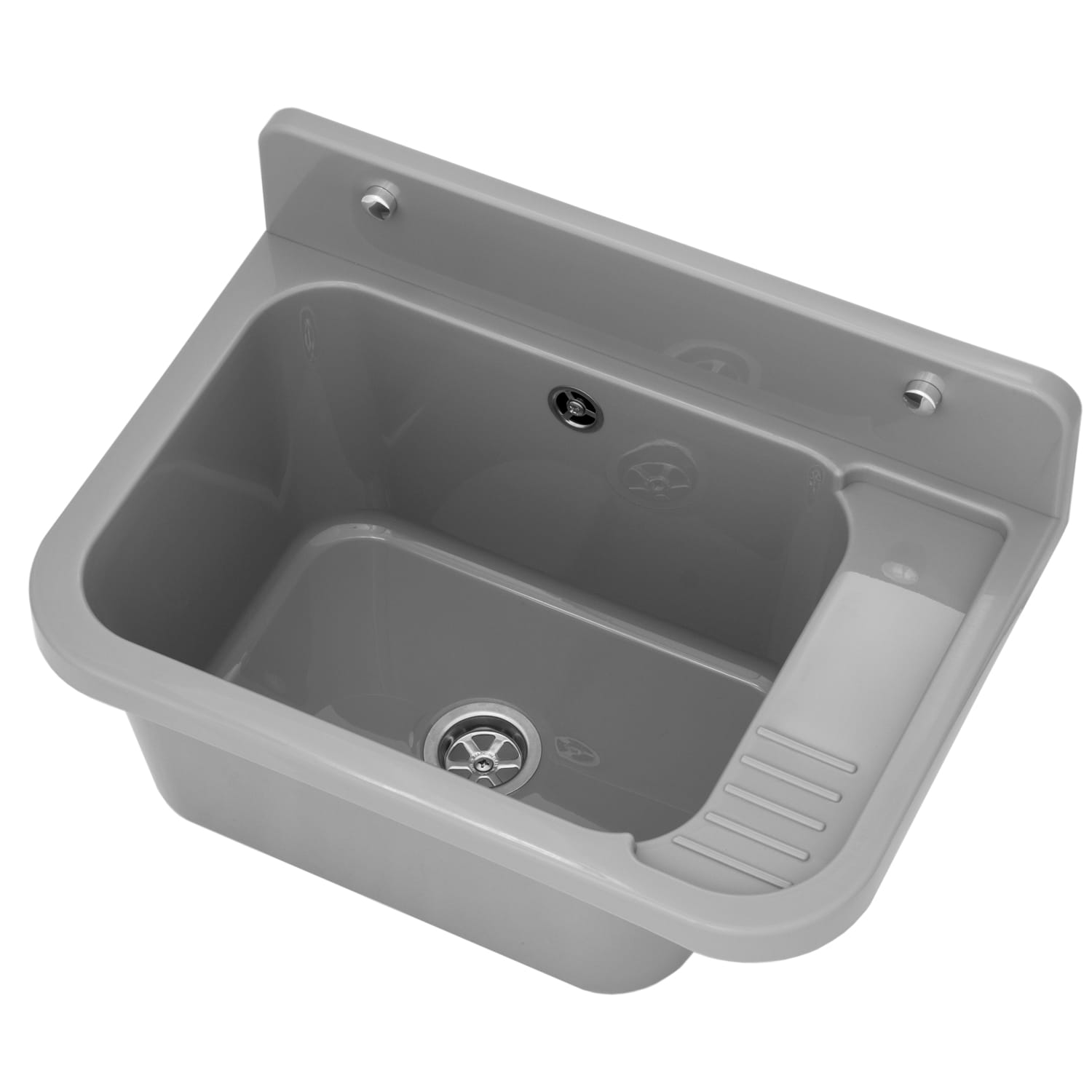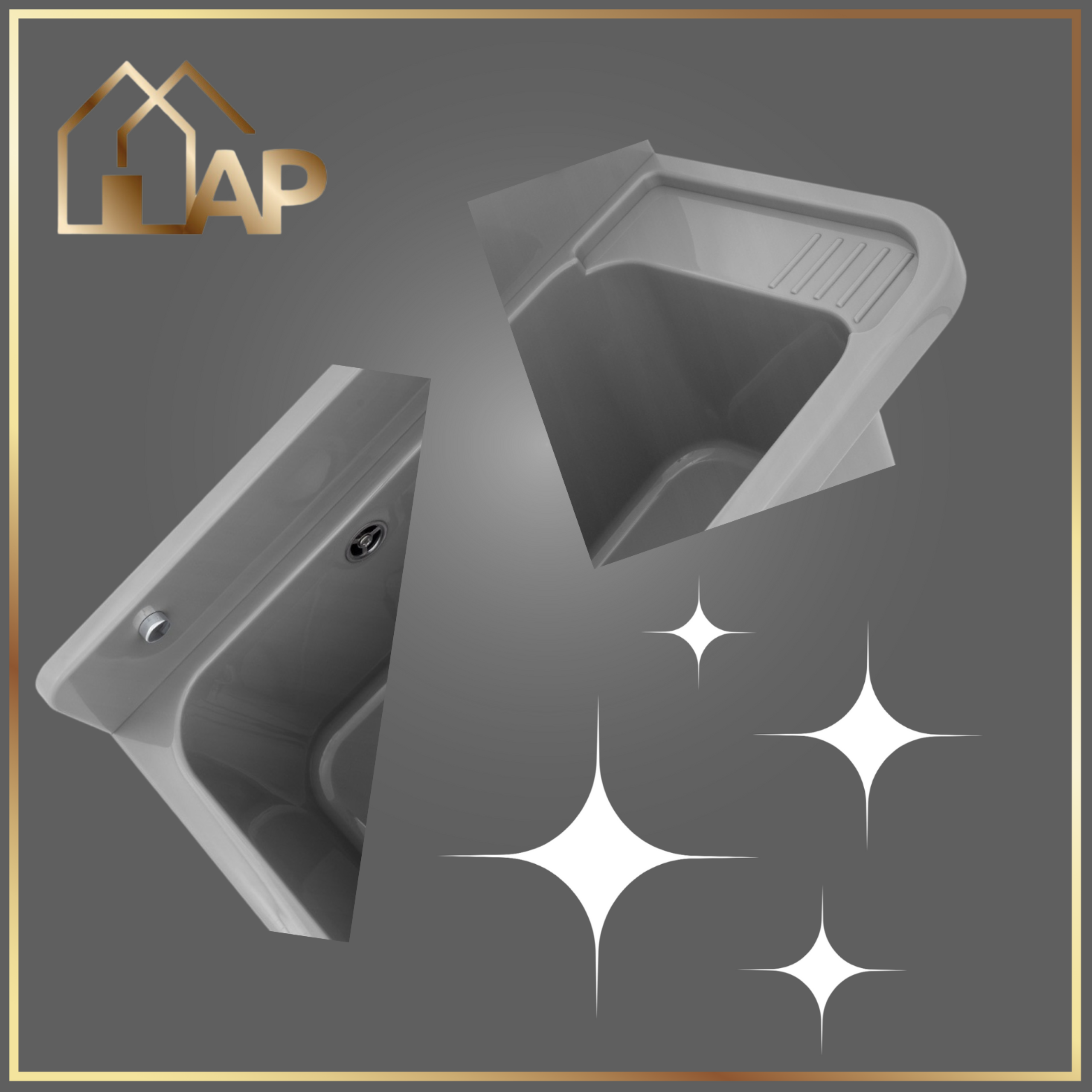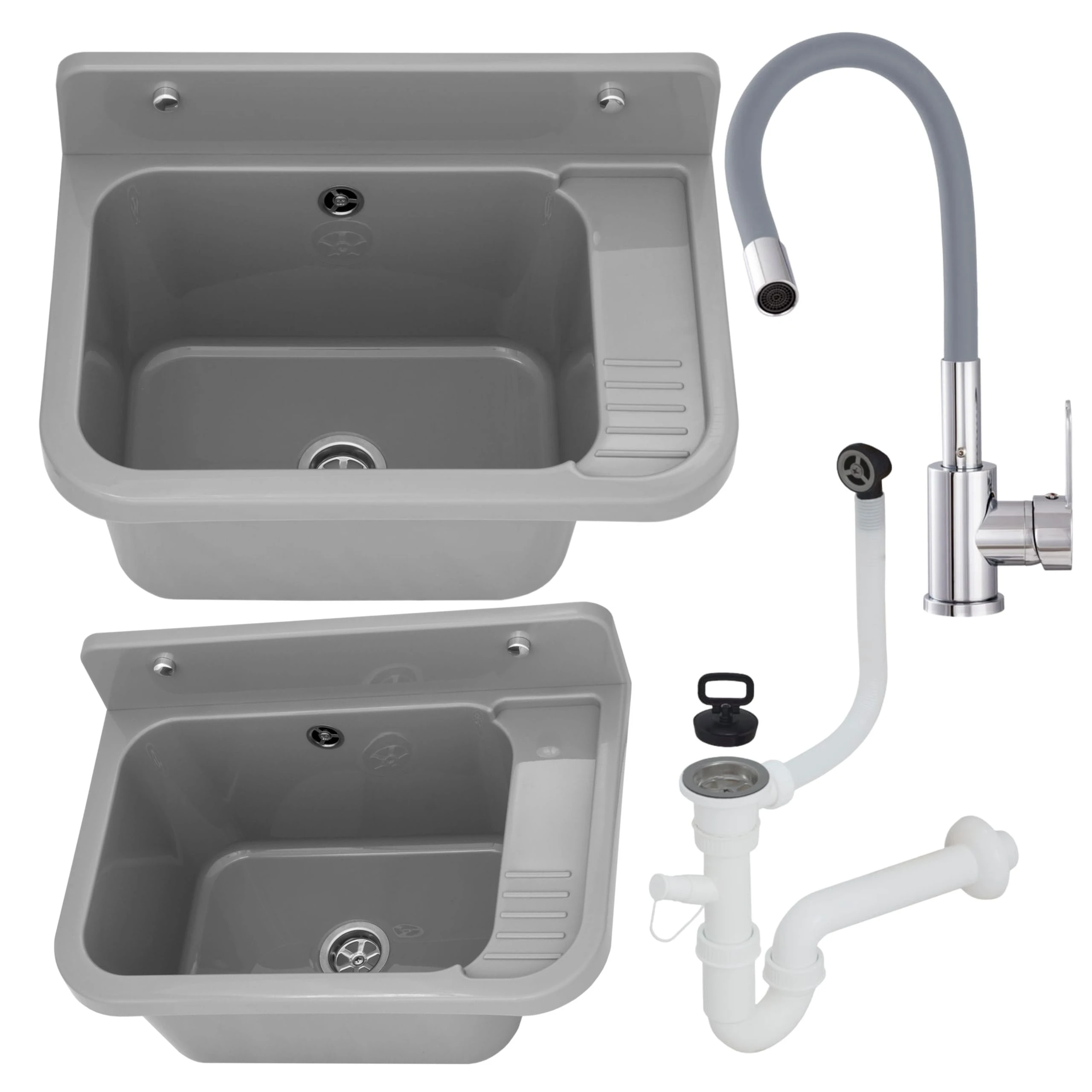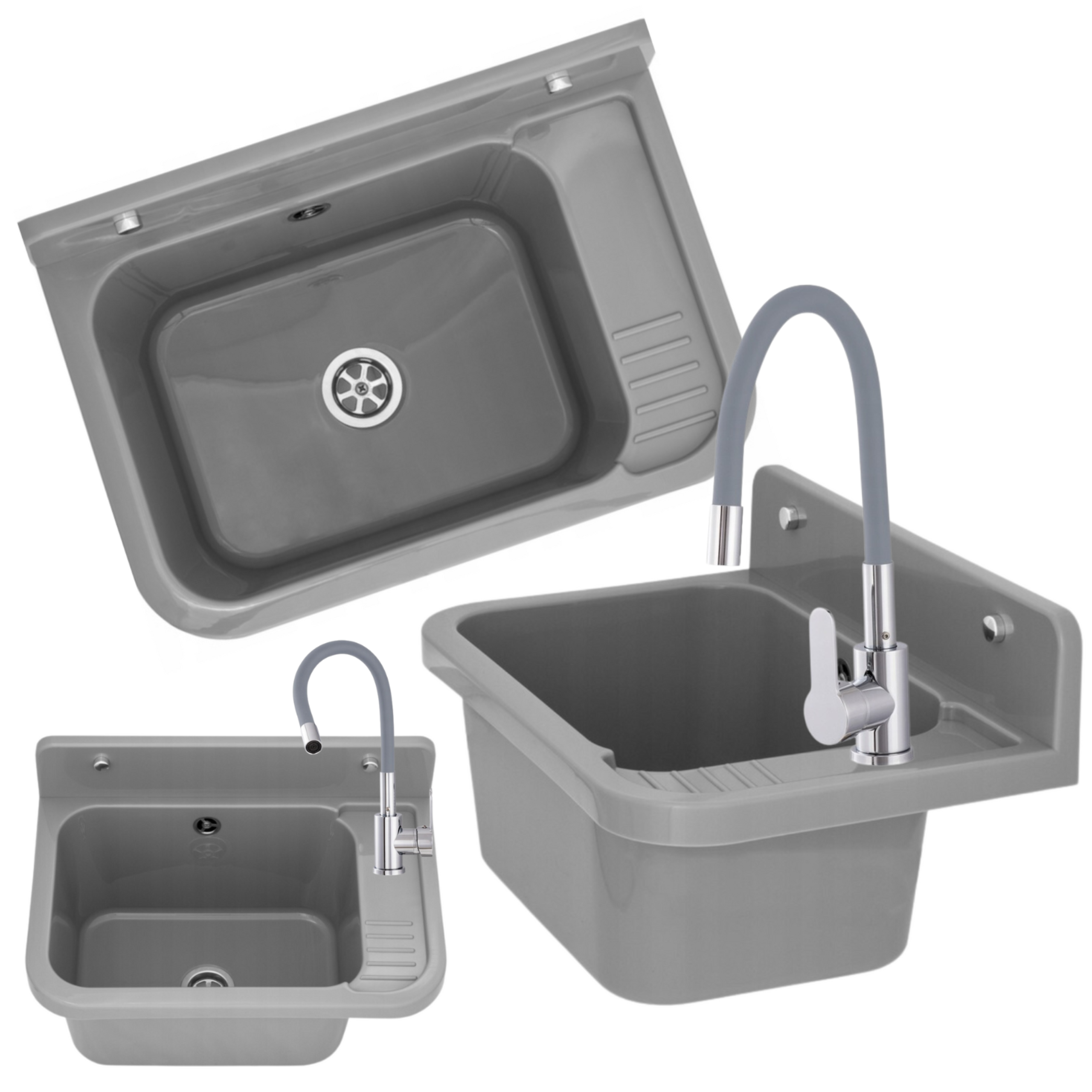 - zlewozmywak gospodarczy z polipropylenu w kolorze szarym,
