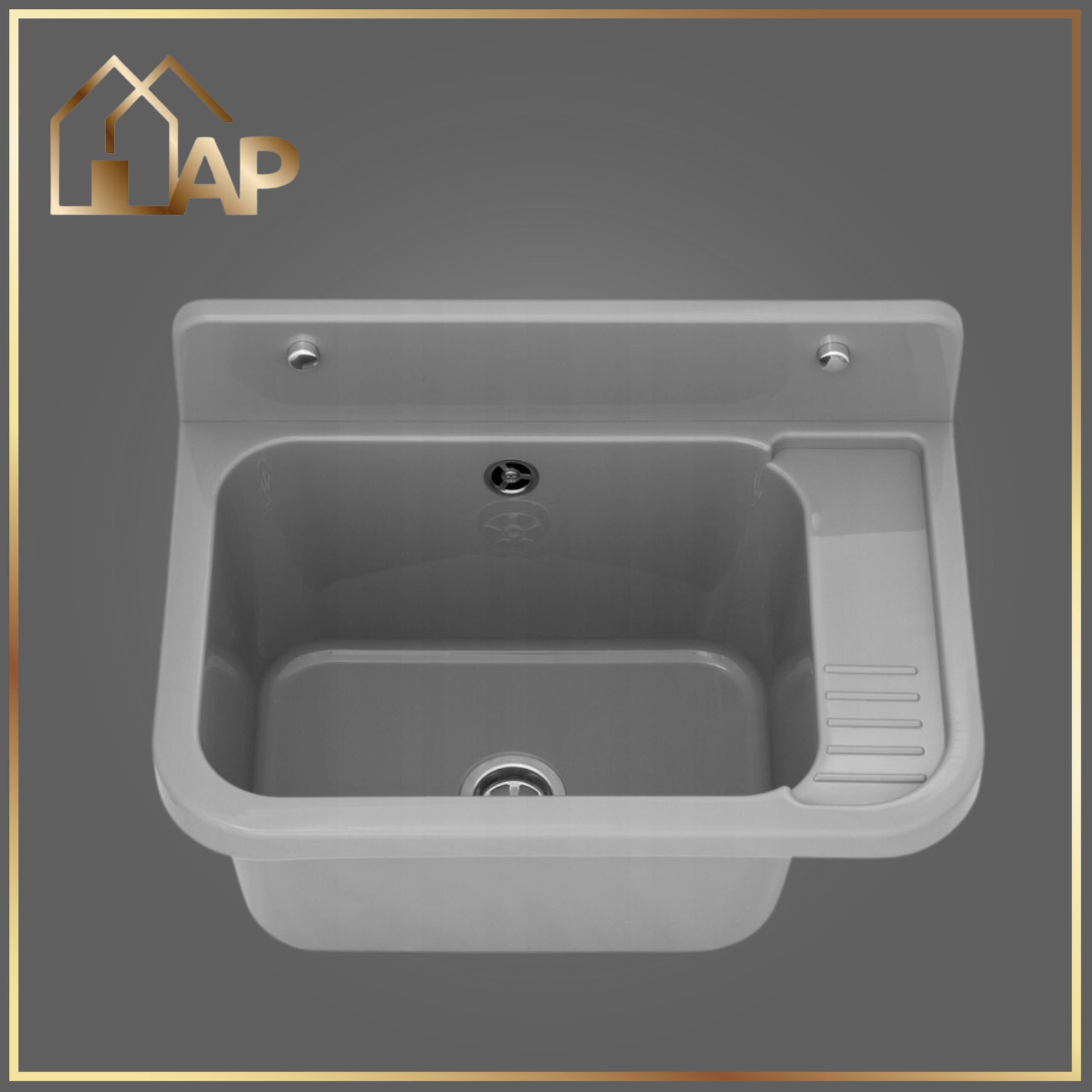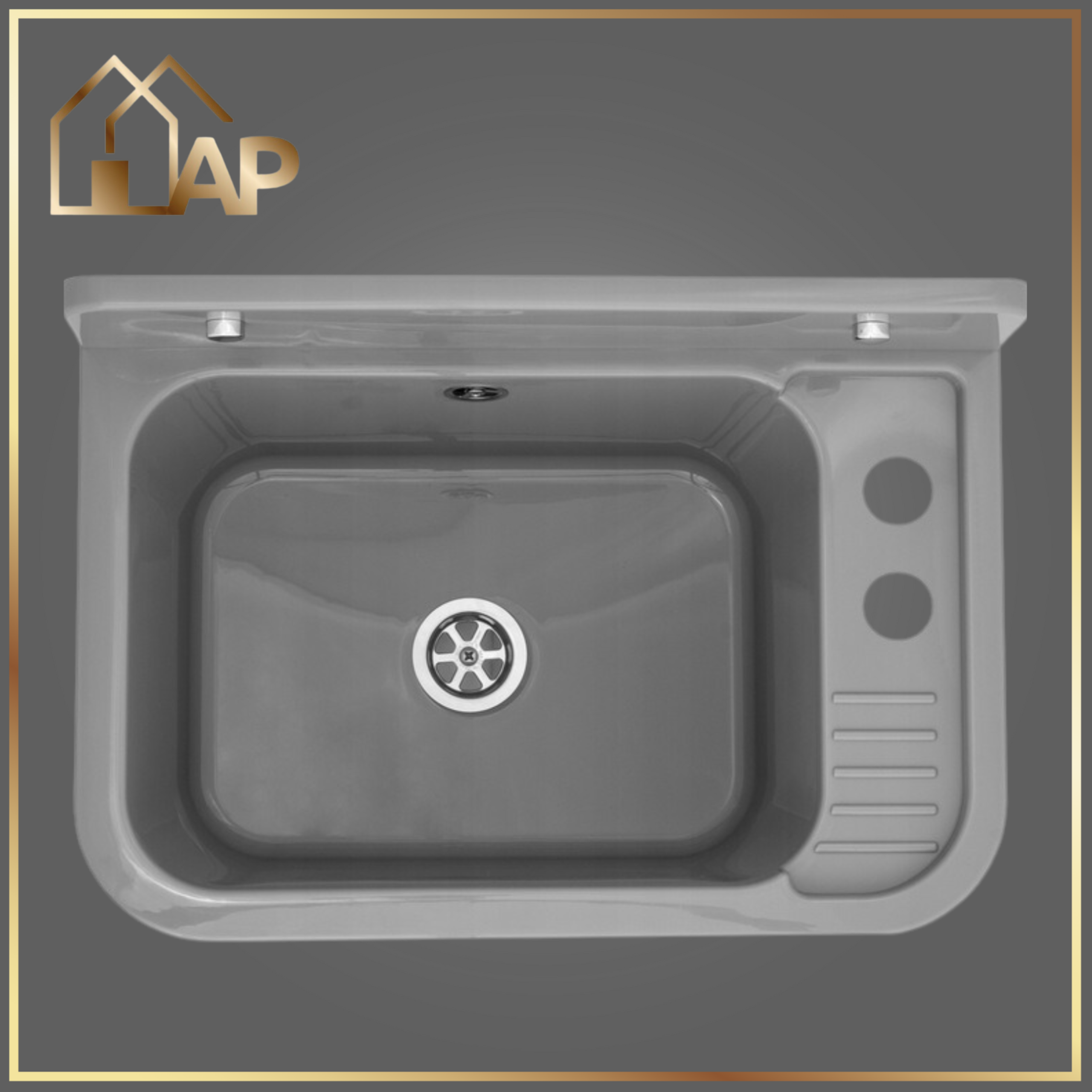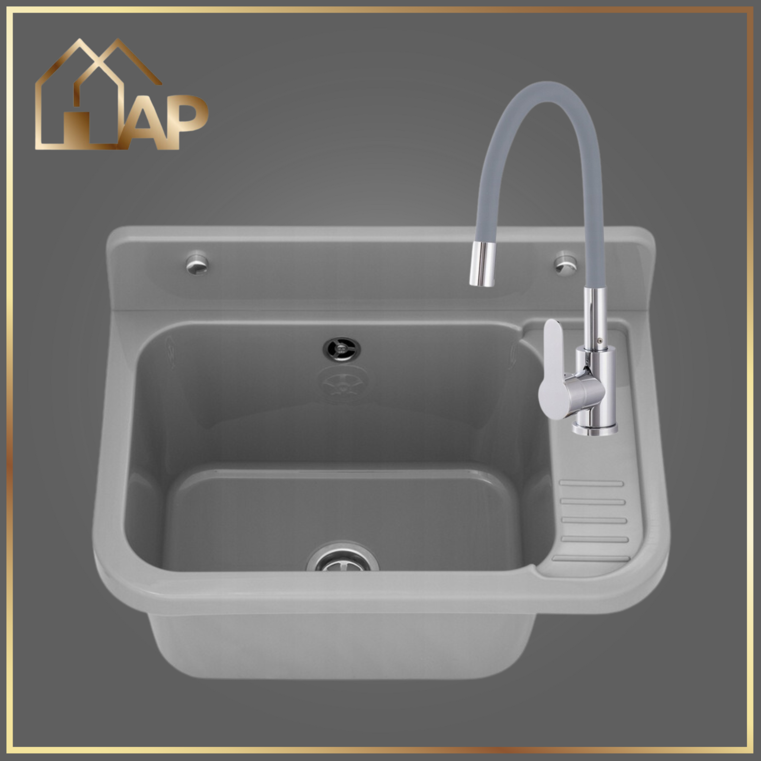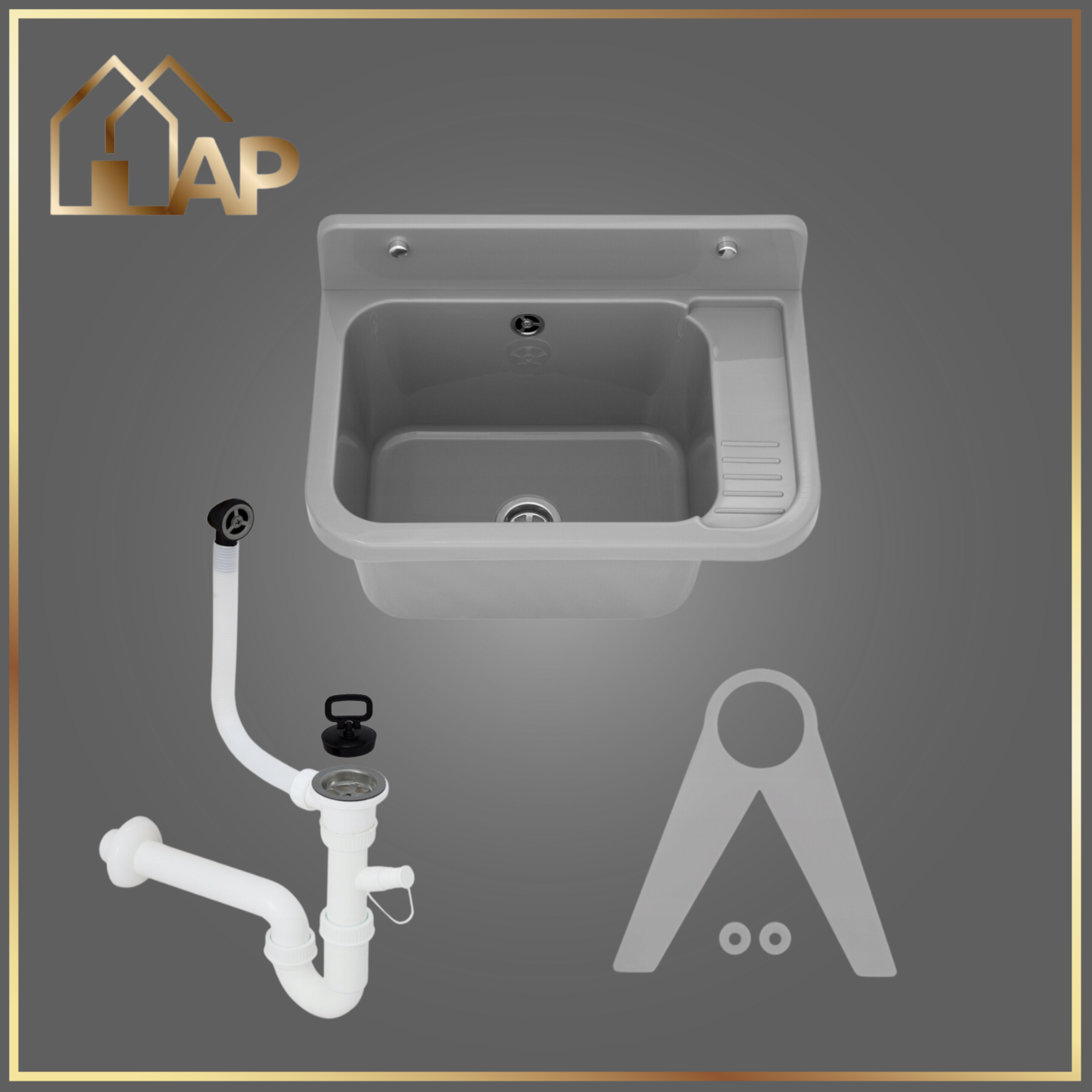 - zlewozmywak gospodarczy z polipropylenu w kolorze szarym,