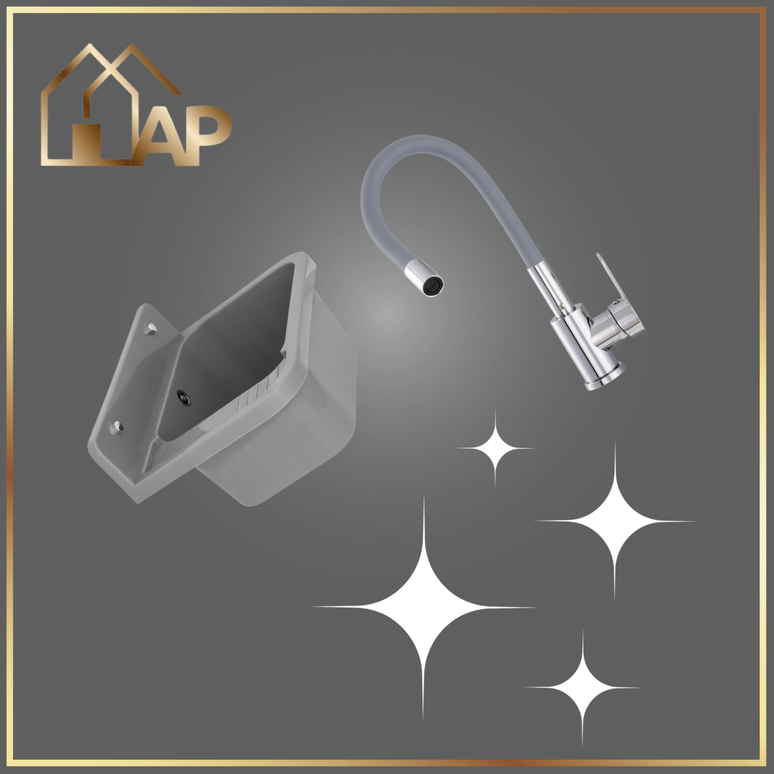 Zlewozmywak gospodarczy VIGO SZARY 50x34 Bateria stojąca FLEX elastyczna wylewka