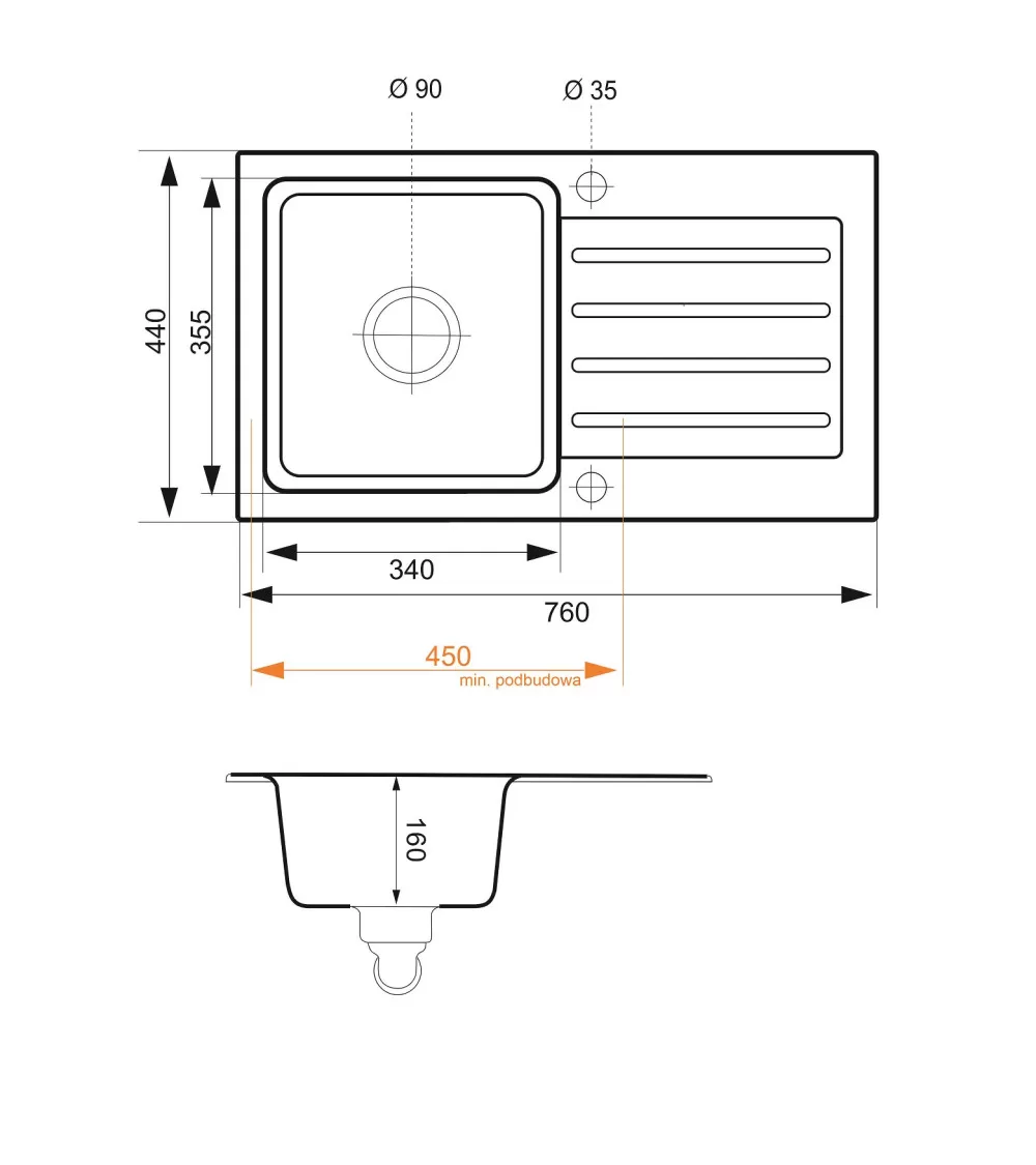 - Dodatkowo w zestawie: karta gwarancyjna, szablon wycięcia otworu pod montaż zlewozmywaka, syfon zlewozmywakowy z automatycznym sterowaniem korka