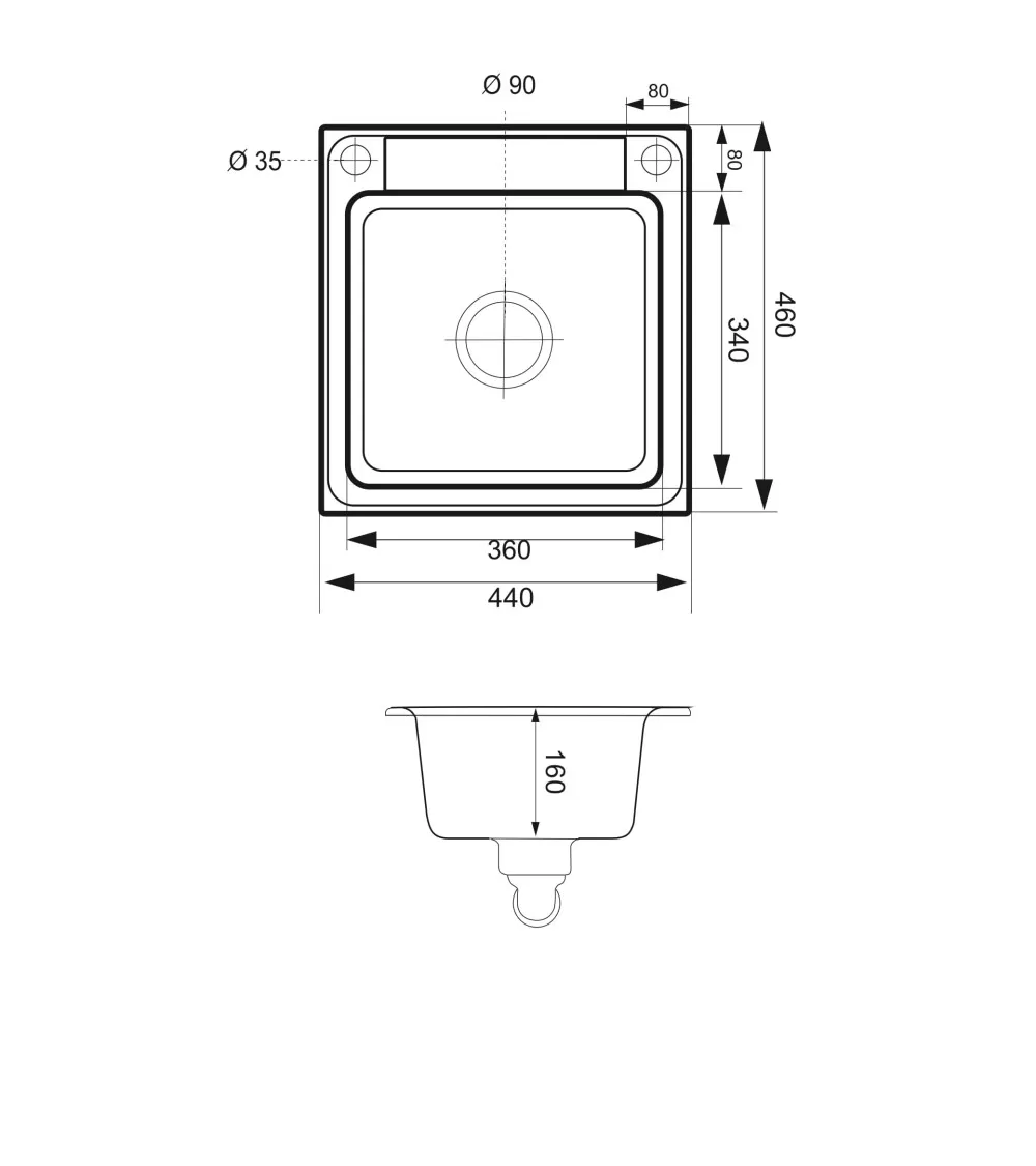 - Jednokomorowa, głęboka misa 16 cm – wygodne mycie naczyń i większych garnków.