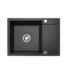 - zlewozmywak granitowy jednokomorowy z ociekaczem BRENOR CORDEO 70 x 50 cm, czarny nakrapiany,